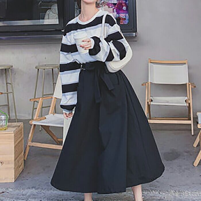 ワンピース 袖あり ロングワンピ ミモレ丈 レディース ストライプ シャツワンピース ワンピ ドレス 長袖 ゆったり きれいめ 大人可愛い カジュアル フェミニン エレガント ハイウエスト おしゃれ 春 秋 冬 20代 30代 40代 50代