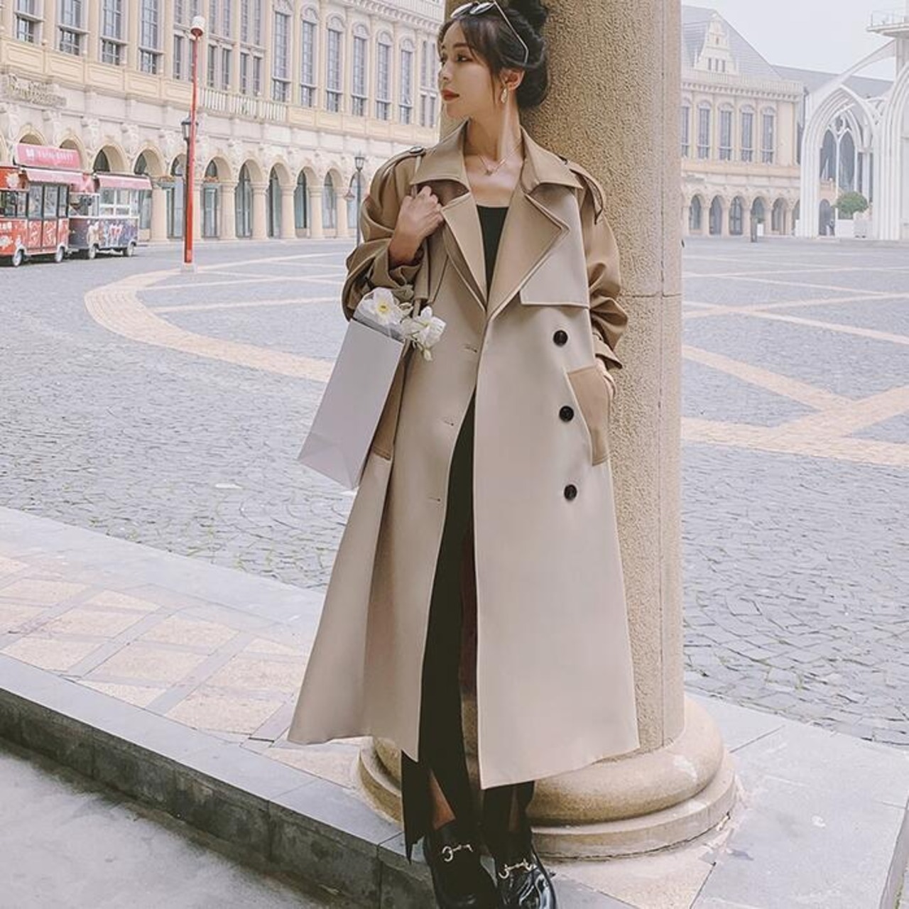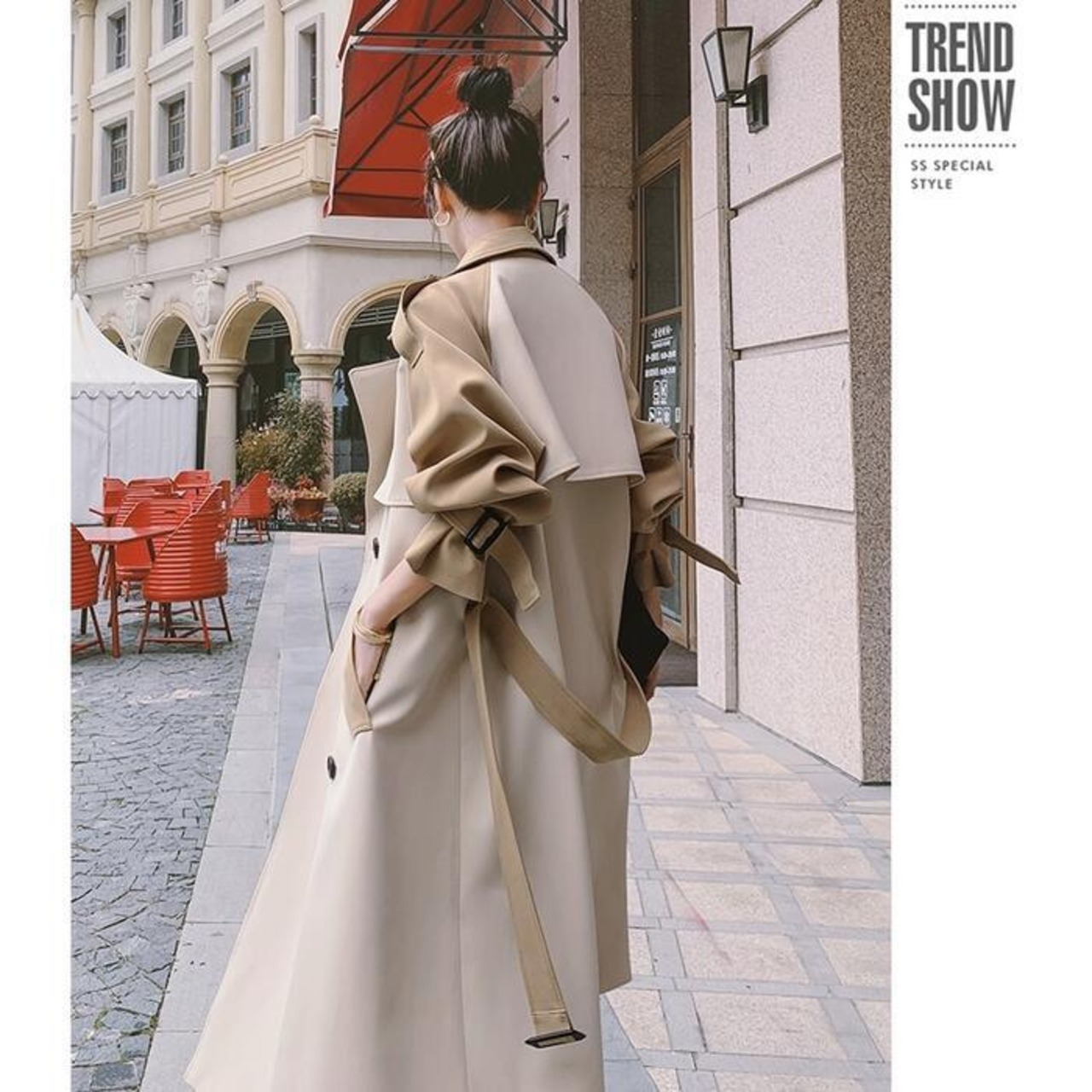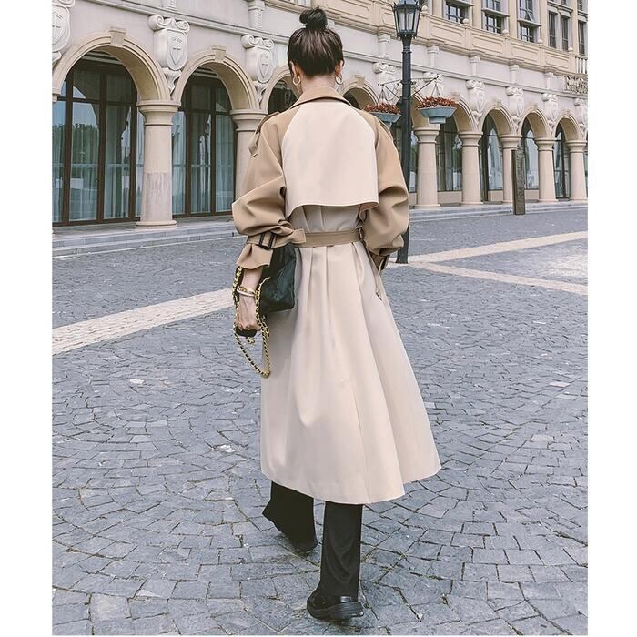 配色デザインがトレンド感のあるトレンチコート。