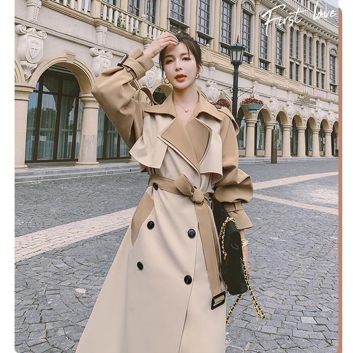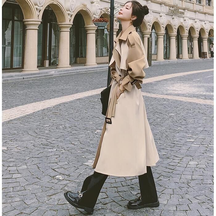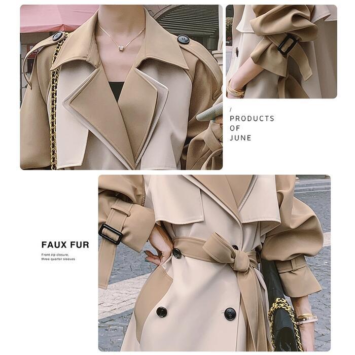 大きいサイズスプリングコート トレンチコート ジャケット 春 コート チェスター 配色 バイカラー レディース きれいめ カジュアル アウター 大人 可愛い ベルト フェミニン キャンディスリーブ 韓国 ゆったり おしゃれ ベージュ 春 秋 冬 20代 30代 40代 50代