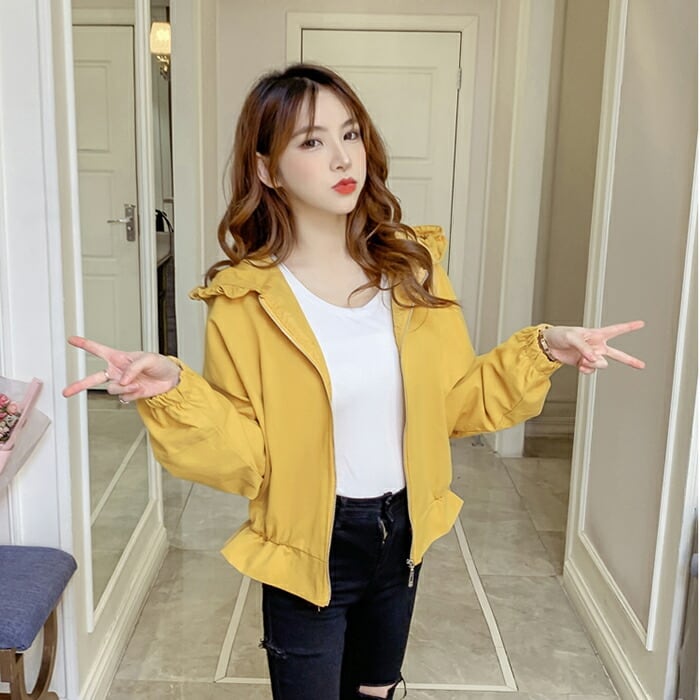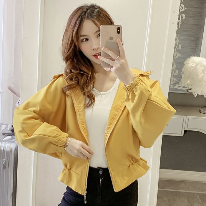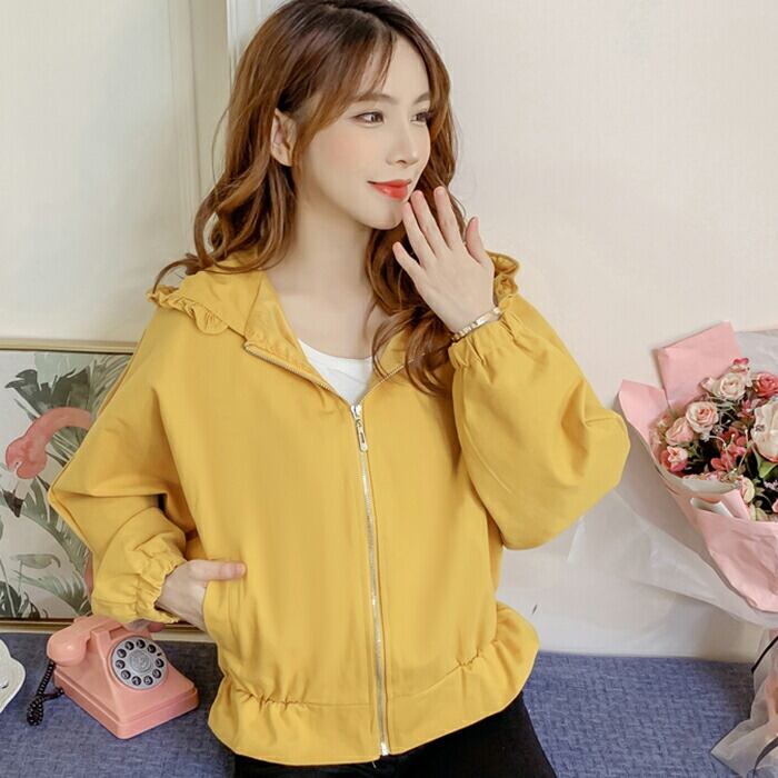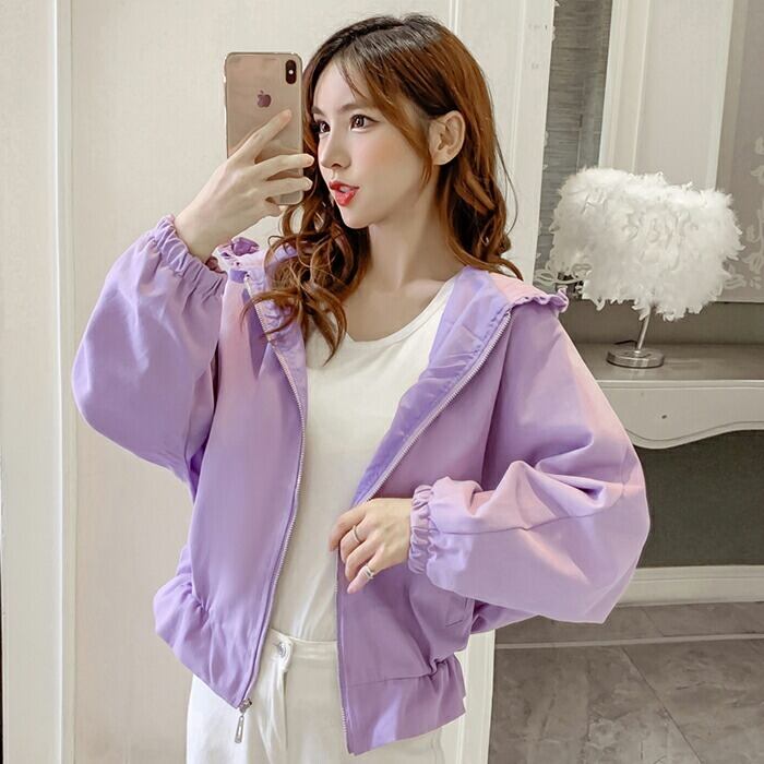 全3色 大きいサイズ おしゃれ スポーティ 韓国 コーデスプリングコート ブルゾン アウター 春 コート レディース カジュアル 可愛い ジャケット コート ミドル丈 きれいめ カジュアル フリル 薄手 黄色 紫 パープル イエロー ホワイト 青 春 秋 冬 20代 30代 40代