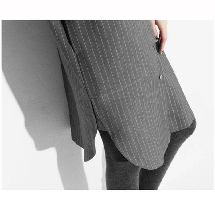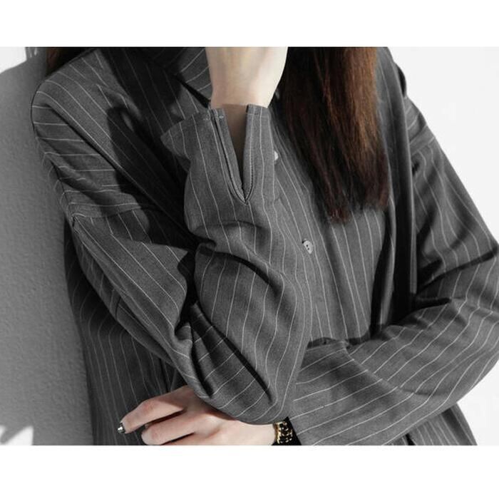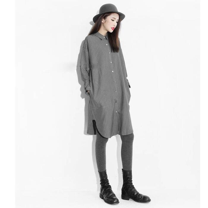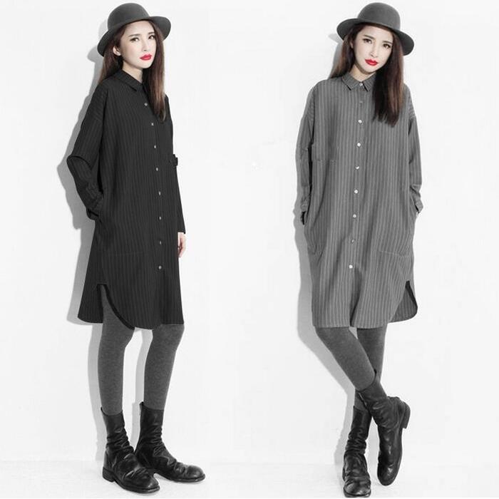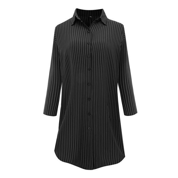 全2色 大きいサイズワンピース シャツワンピ 袖あり ロングワンピ ひざ丈 ストライプ レディース ワンピ ドレス 長袖 大人可愛い カジュアル フェミニン シンプル チュニック 羽織 トップス おしゃれ グレー ブラック 黒 春 秋 夏 20代 30代 40代 50代