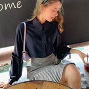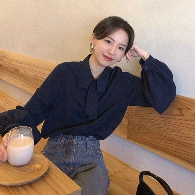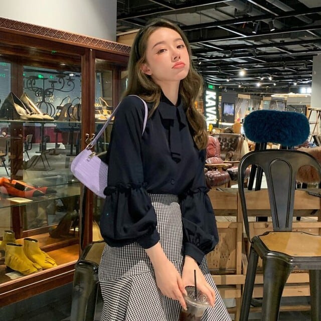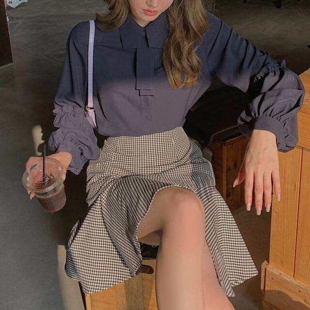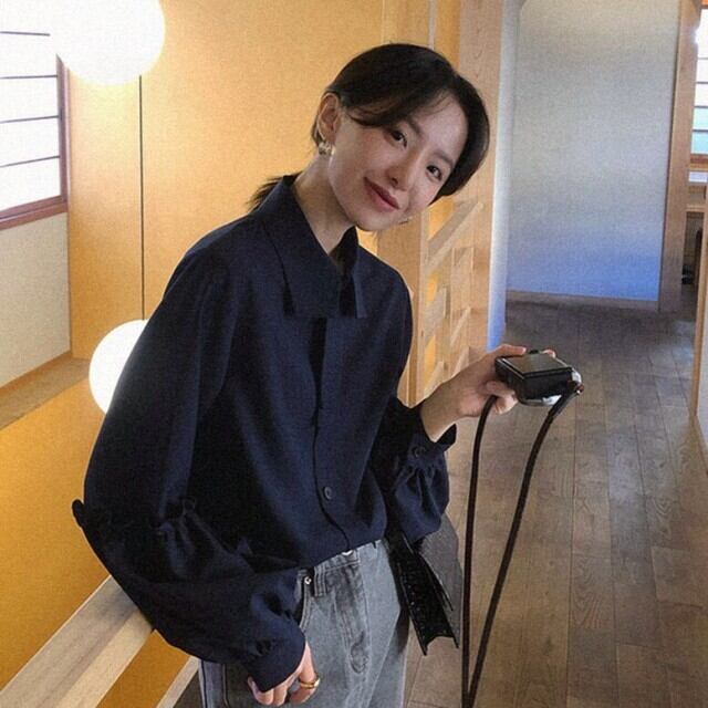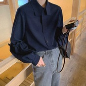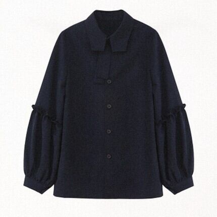 ふっくらとしたボリューム袖やフリルが女性らしい印象にみせてくれる1枚。