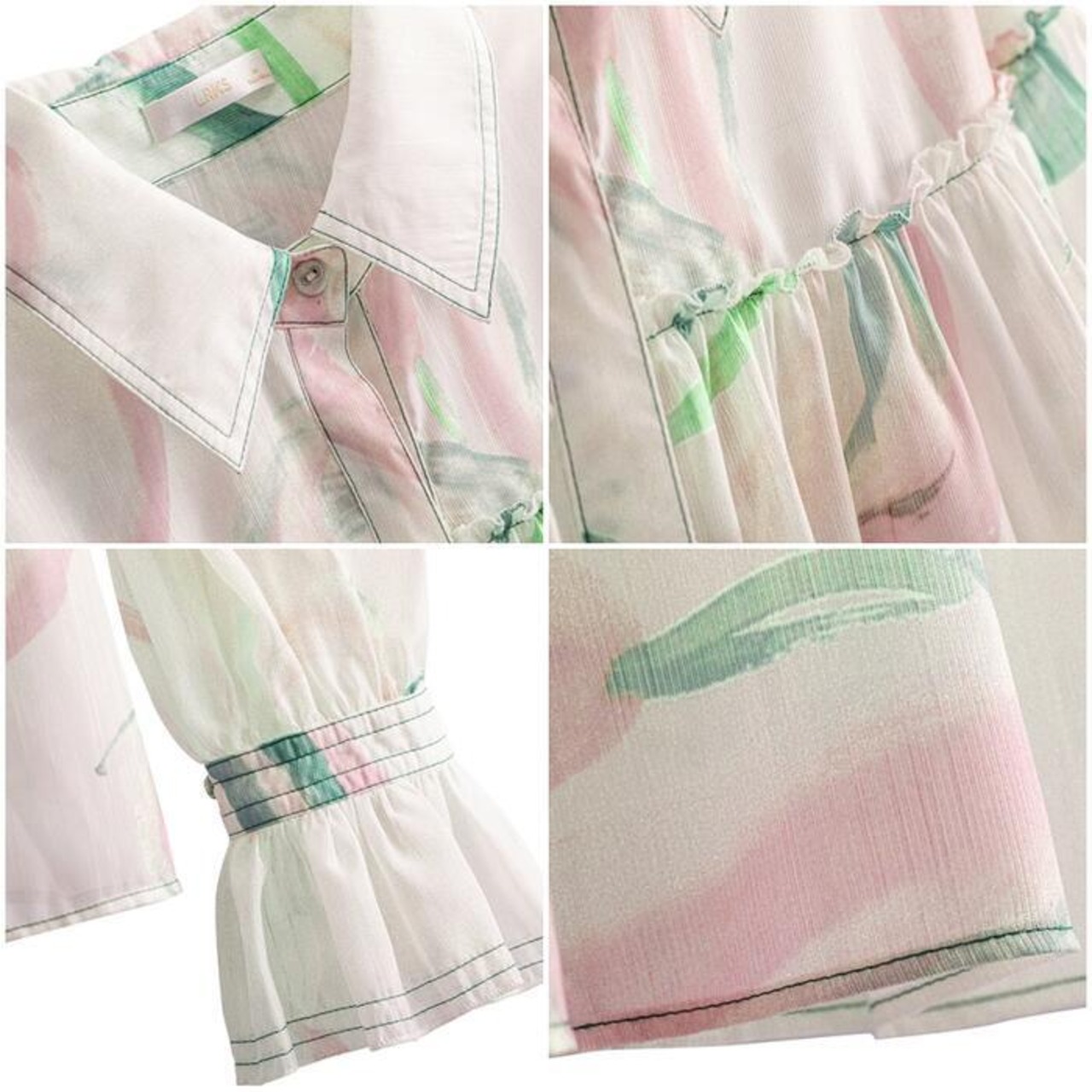 優しげな水彩プリントがフェミニンなブラウス。