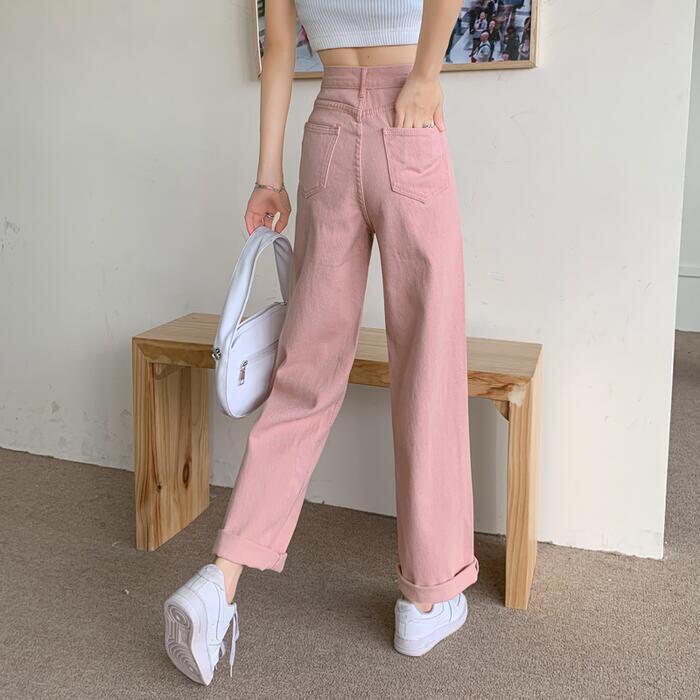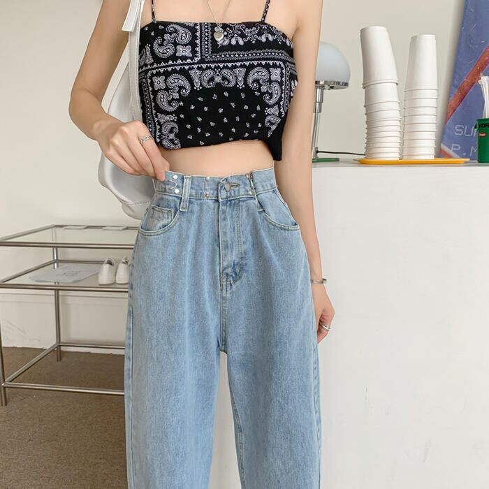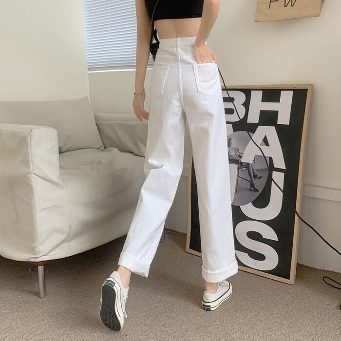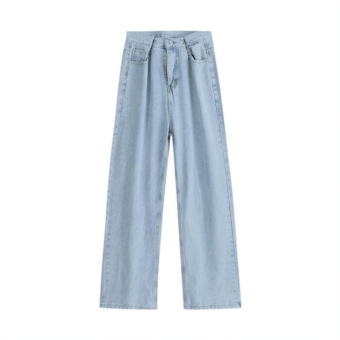 程よいワイドシルエットのハイウエストデニムパンツ。