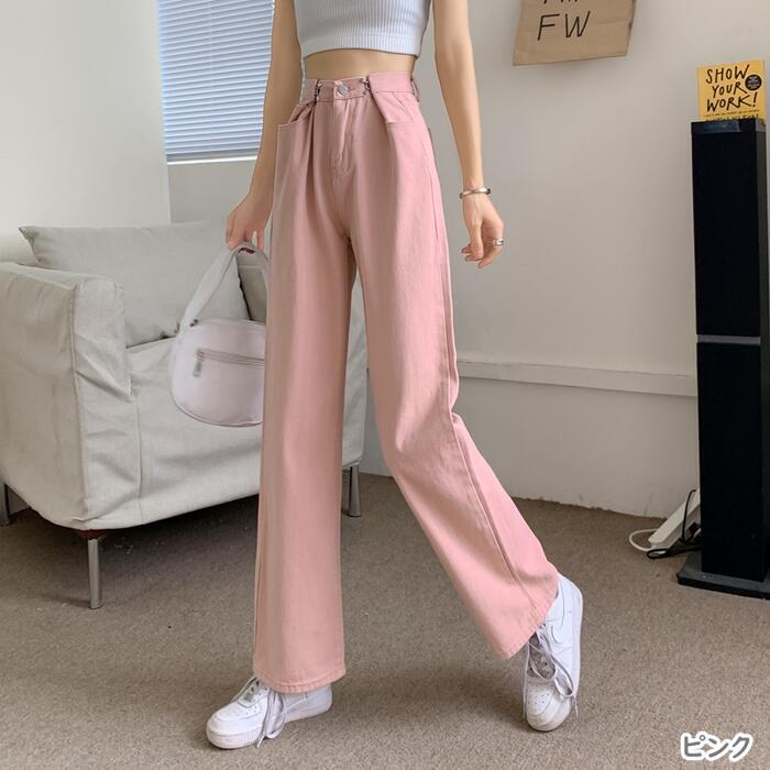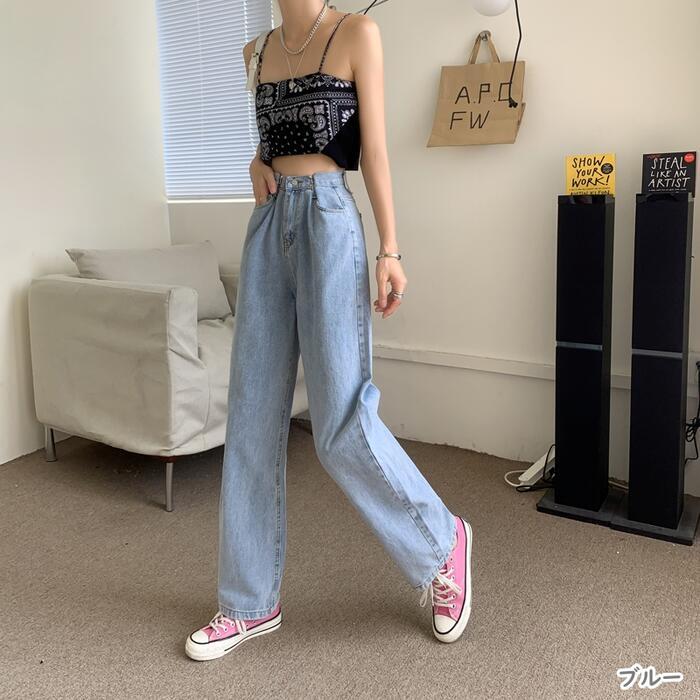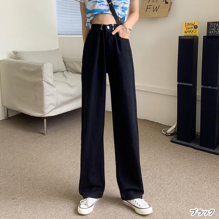 全5色 大きいサイズパンツ レディース デニム ワイドレッグパンツ ロング丈 おしゃれ かっこいい ハイウエスト カジュアル こなれ感 シンプル ベーシック ボーイッシュ 大人 可愛い ブラック 黒 ブルー ピンク ホワイト 白 オールシーズン 20代 30代 40代 50代