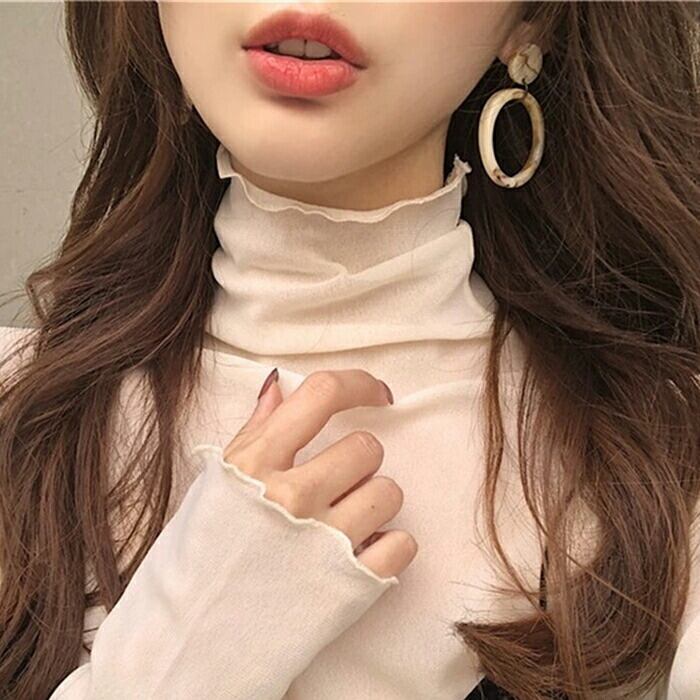 全2色 重ね着 トップス Tシャツ カットソー レース インナー フリル レイヤード レディース カジュアル 長袖 おしゃれ 大人 可愛い フェミニン ハイネック きれいめ 透け感 アプリコット ブラック 黒 春 夏 秋 20代 30代 40代 50代