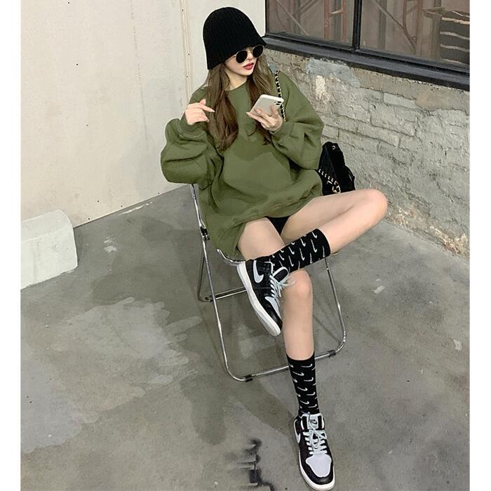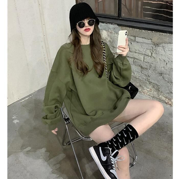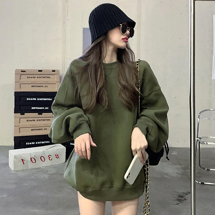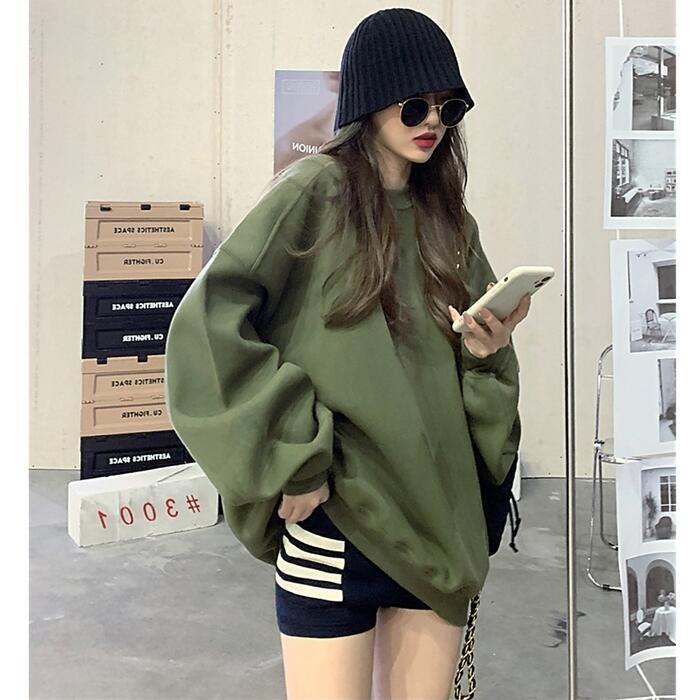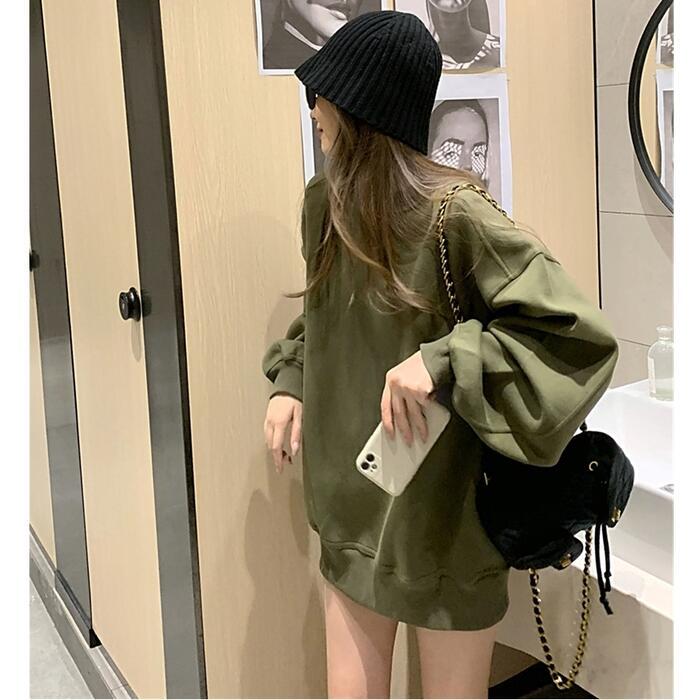 大きいサイズトップス スウェット プルオーバー レディース カジュアル 長袖 おしゃれ 大人 可愛い オーバーサイズ ビッグシルエット フェミニン かっこいい ゆったり クルーネック グリーン 緑 カーキ 春 冬 秋 20代 30代 40代 50代