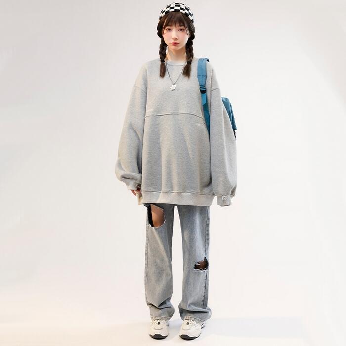 さりげないロゴがポイントになったオーバーサイズのプルオーバー。