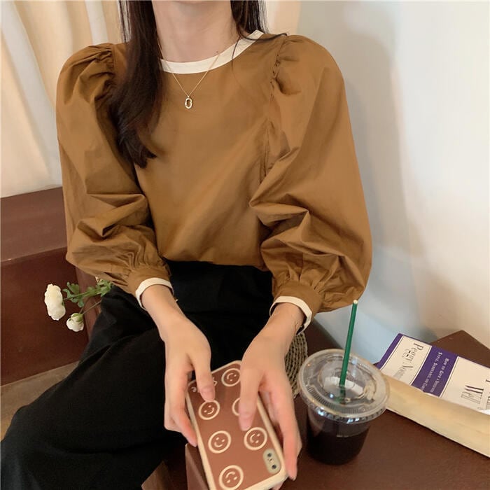 ぽわんとしたパフスリーブが可愛い長袖ブラウス。