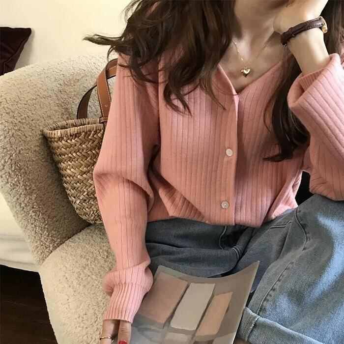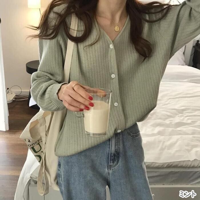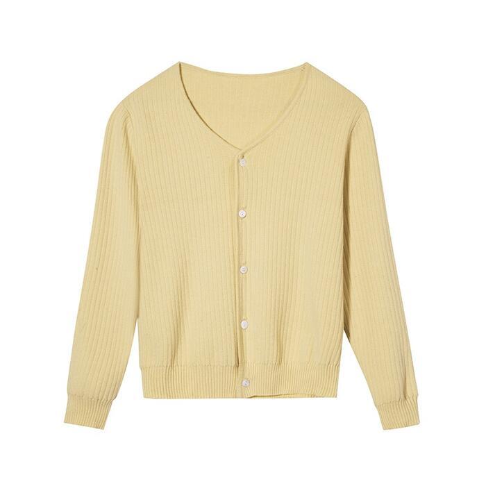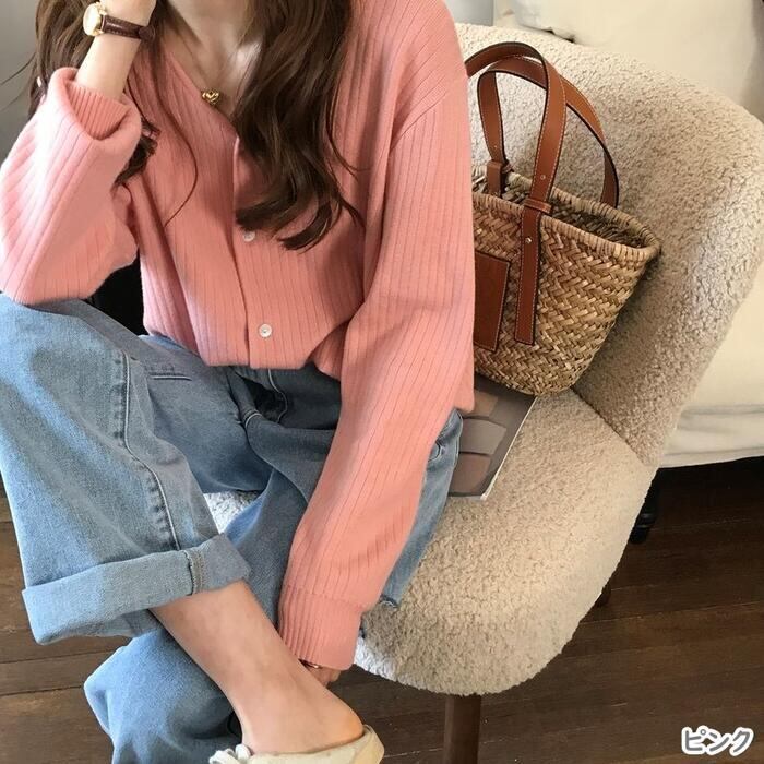 パステルカラーがシーズンムードを高めるシンプルなカーディガン。