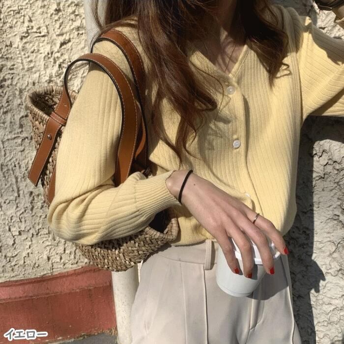 全5色 トップス ニット カーディガン カットソー レディース きれいめ カジュアル 長袖 おしゃれ 大人 可愛い フェミニン タイト シンプル ベーシック グリーン 緑 イエロー オレンジ ピンク ベージュ ブラック 黒 春 夏 秋 20代 30代 40代 50代