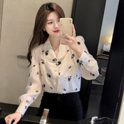 大きいサイズトップス シャツ ブラウス 花柄 ビジュー レディース エレガント きれいめ カジュアル 長袖 おしゃれ 大人 可愛い フェミニン パフスリーブ クラシカル シフォン お呼ばれ ベージュ 春 夏 秋 20代 30代 40代 50代