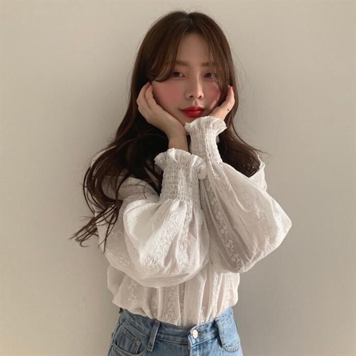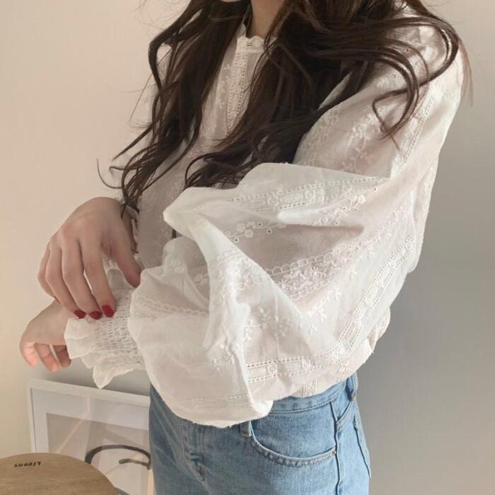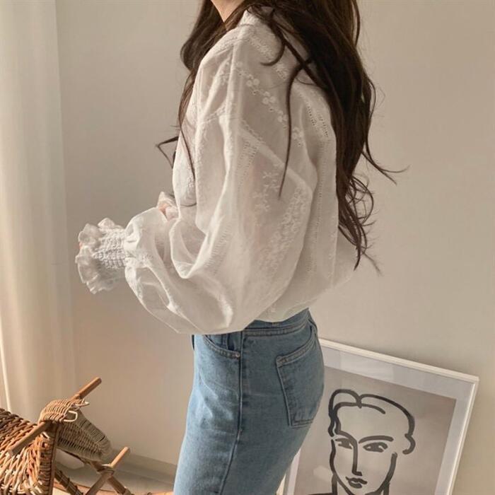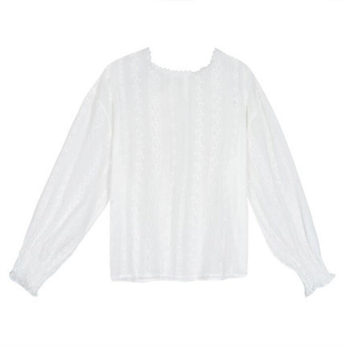 トップス シャツ ブラウス レース ボリュームスリーブ レディース エレガント きれいめ カジュアル 長袖 おしゃれ 大人 可愛い フェミニン パフスリーブ クラシカル プルオーバー ホワイト 白 春 夏 秋 20代 30代 40代 50代