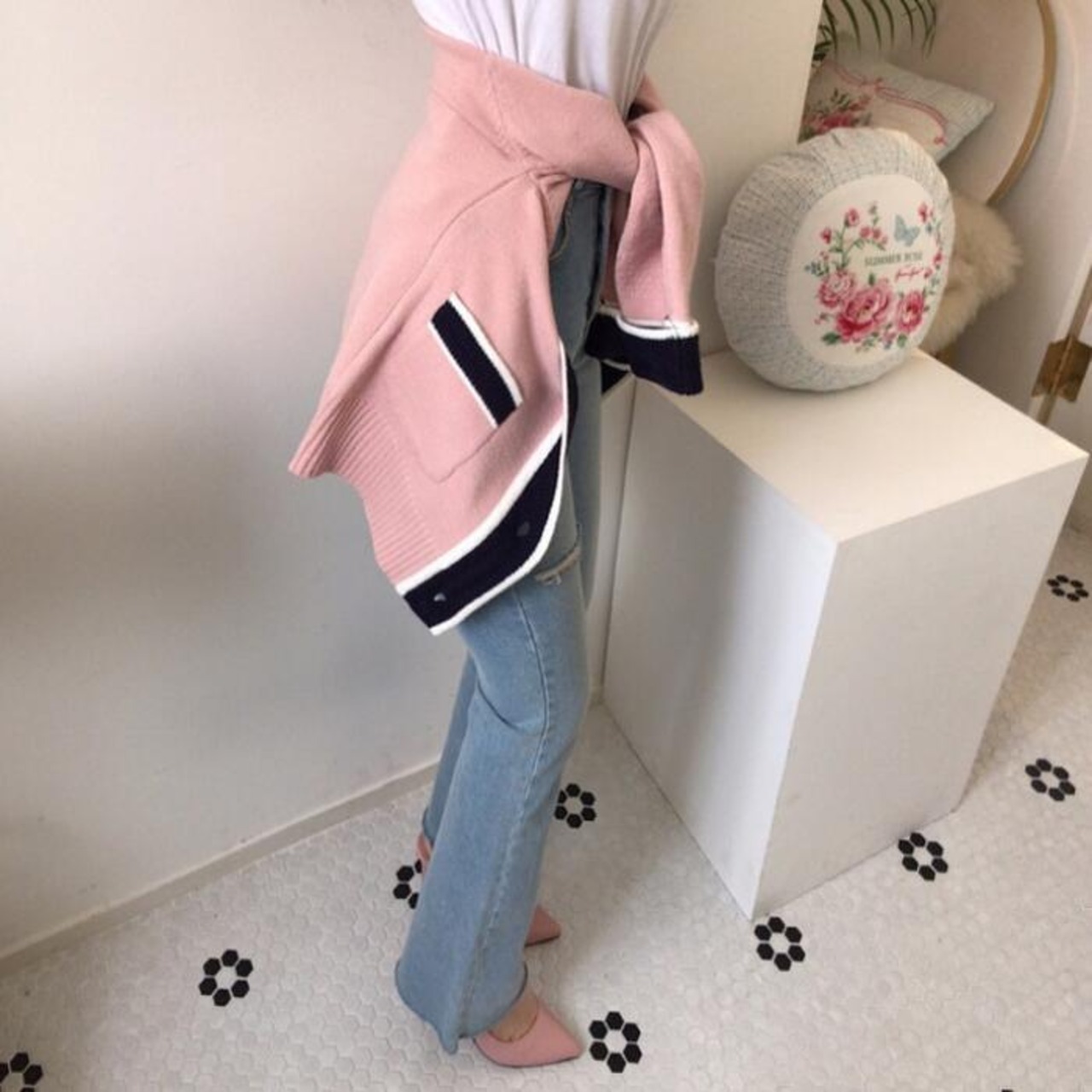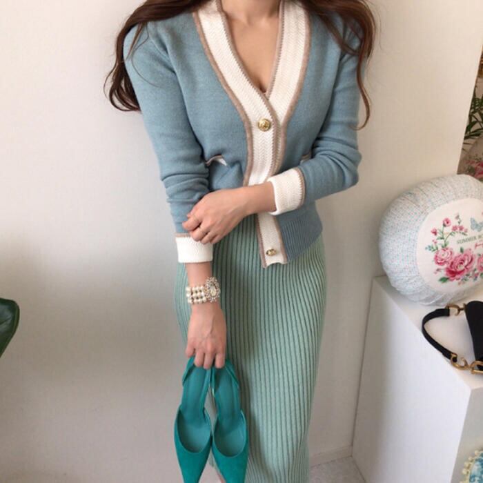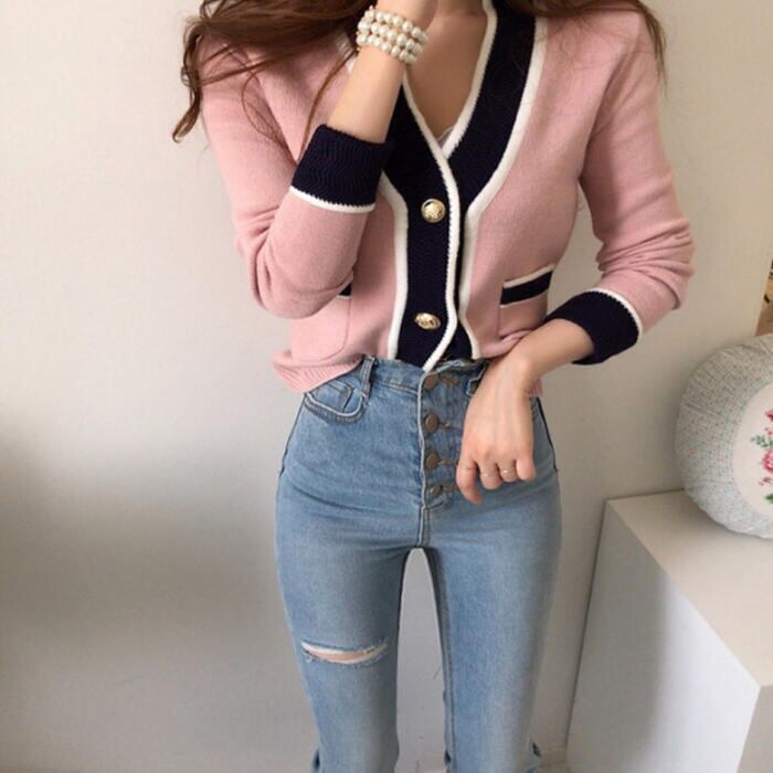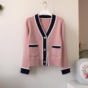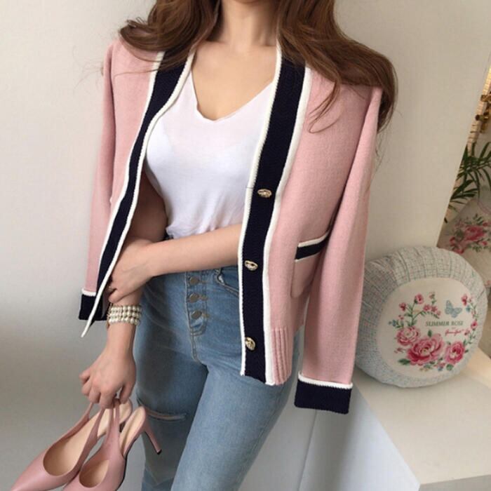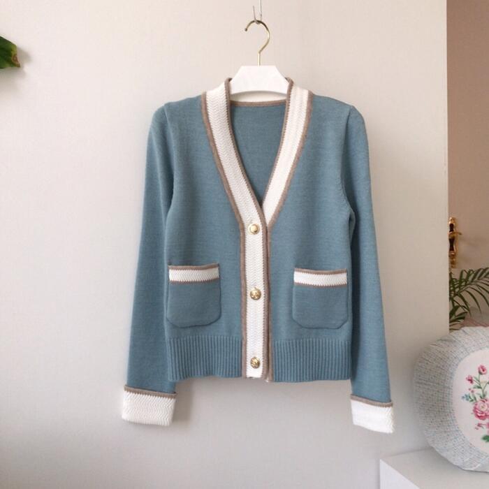 春らしいニュアンスカラーのVネックカーディガン。