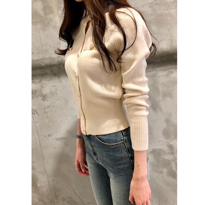 全2色 大きいサイズトップス ニット カーディガン カットソー レディース パールボタン きれいめ カジュアル 長袖 おしゃれ 大人 可愛い フェミニン シンプル ベーシック タイト オフィス 通勤 ブラック 黒 ベージュ 春 冬 秋 20代 30代 40代 50代