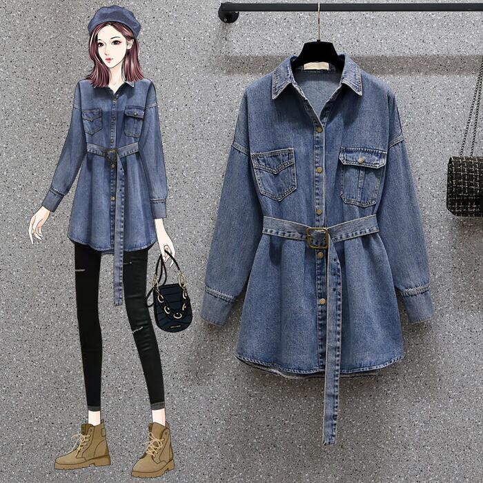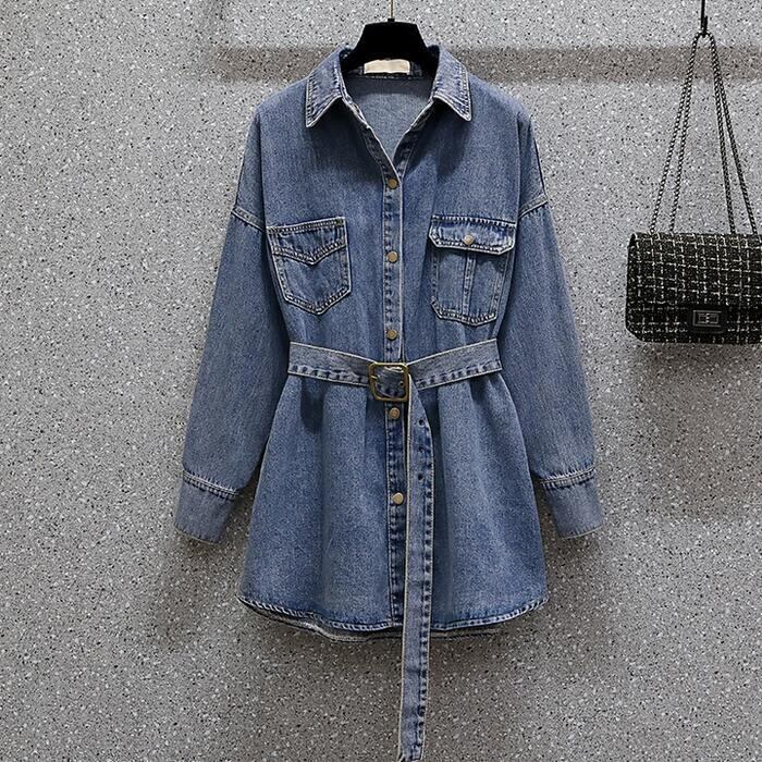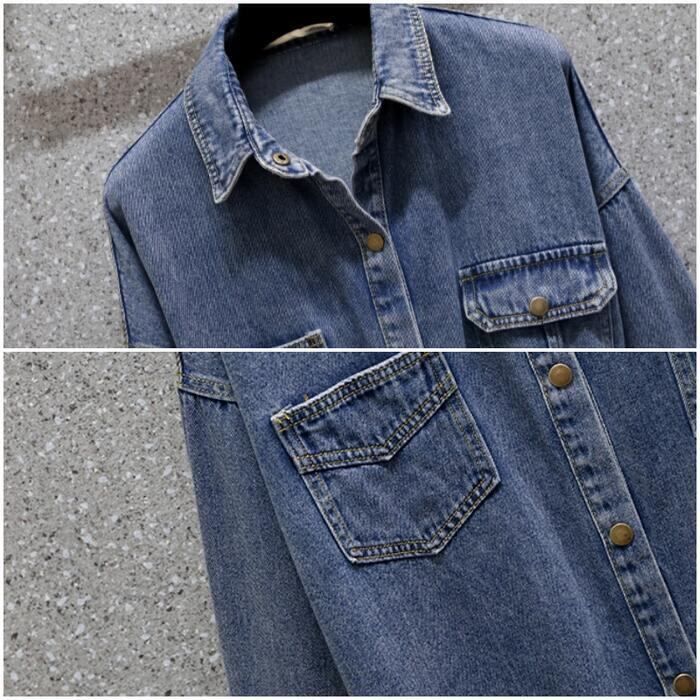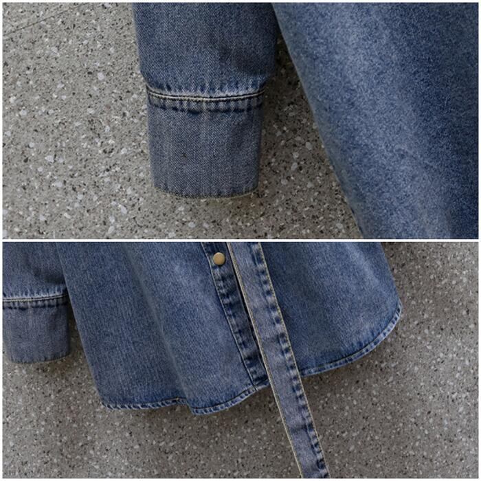 トップス ブラウス シャツ デニム ジャケット レディース ダンガリー ベルト カジュアル 長袖 おしゃれ 大人 可愛い フェミニン ゆったり チュニック 体型カバーかっこいい 大きいサイズ ブルー 青 春 冬 秋 20代 30代 40代 50代