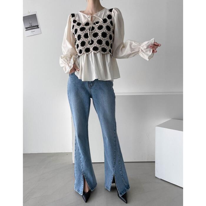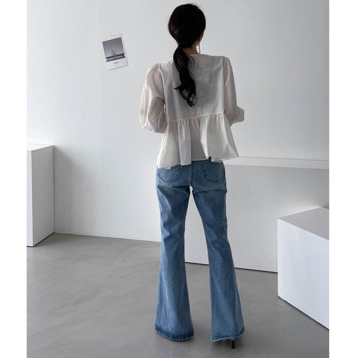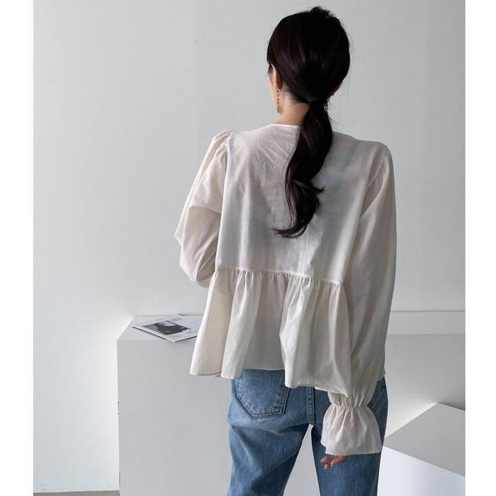 シンプルなボトムスに合わせるだけでトレンド感のあるスタイルが完成です♪