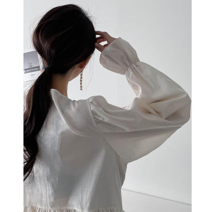 ボリュームのあるキャンディスリーブで女性らしさをプラス。