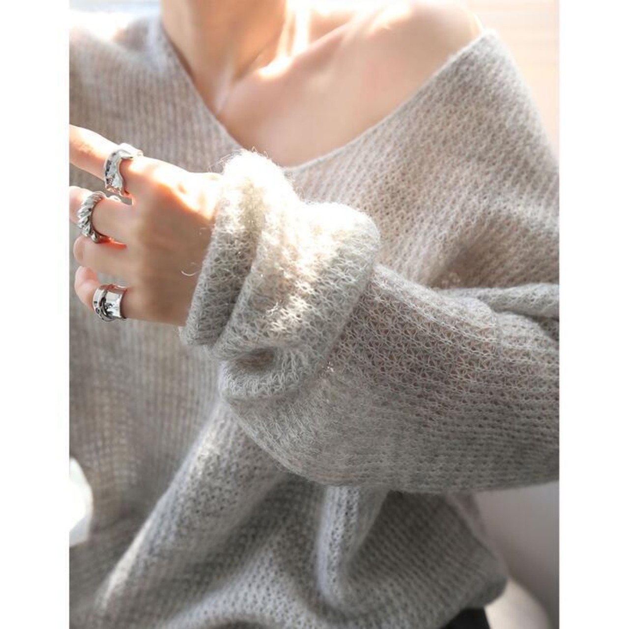 トレンド感のあるメッシュ編みが目を引くローゲージニット。