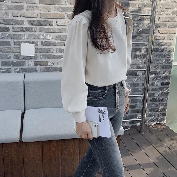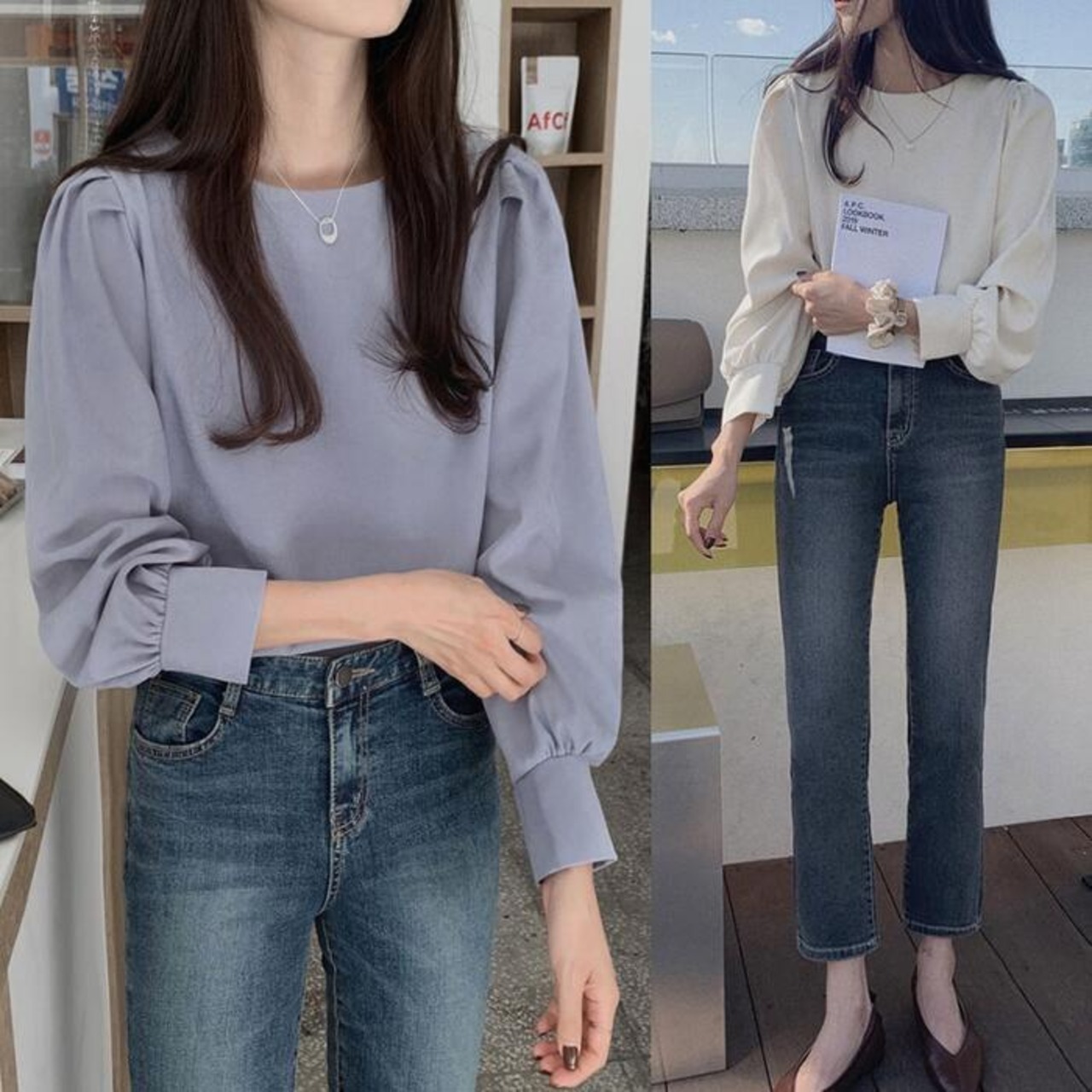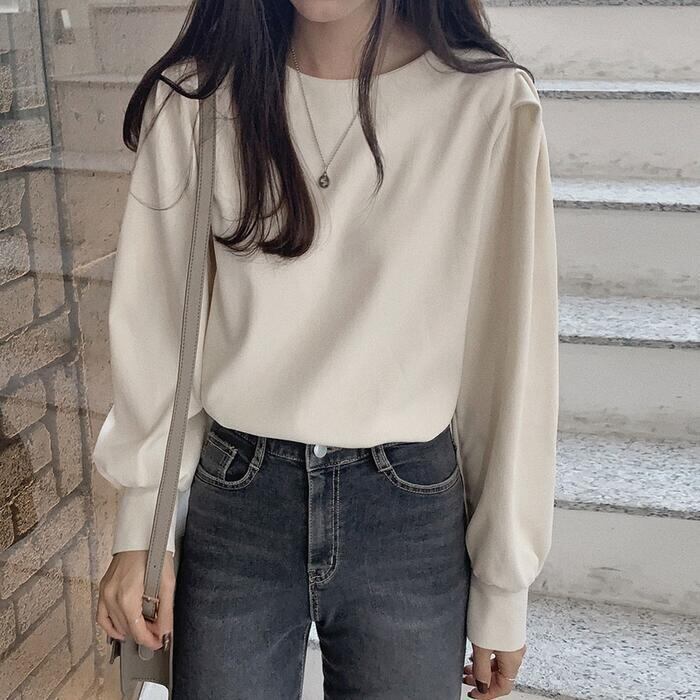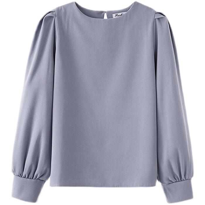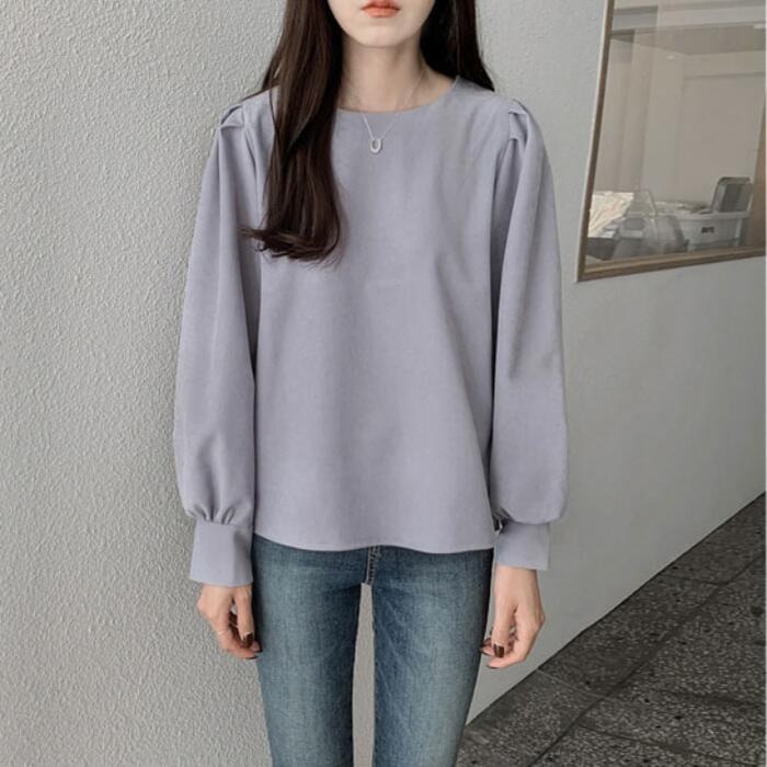 全2色 トップス ブラウス シャツ パフスリーブ レディース エレガント きれいめ 長袖 カジュアル おしゃれ 大人 可愛い フェミニン シンプル プルオーバー 韓国 シフォン 大きいサイズ ホワイト 白 ブルー 青 春 夏 秋 20代 30代 40代 50代