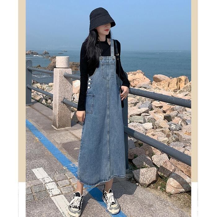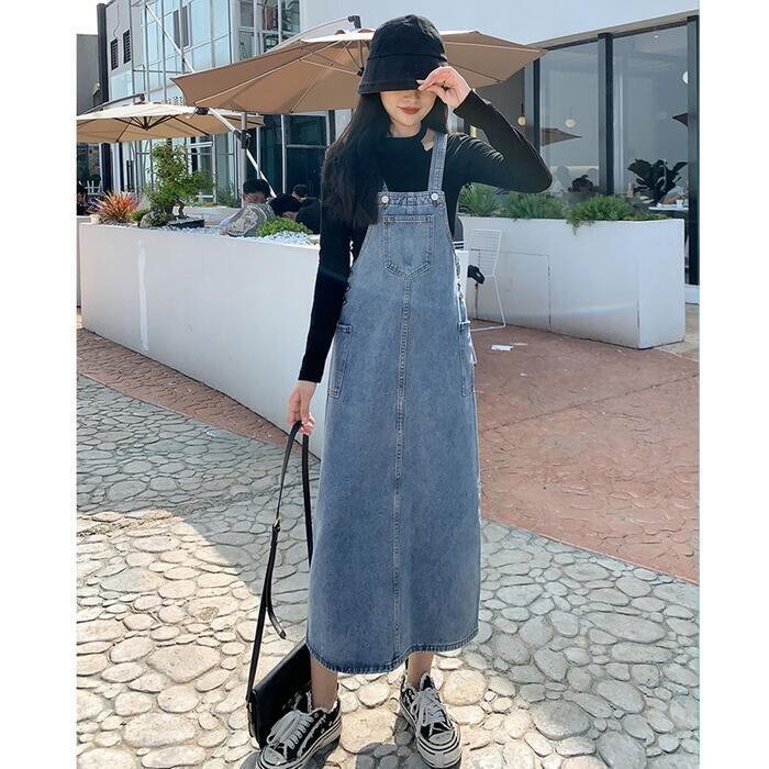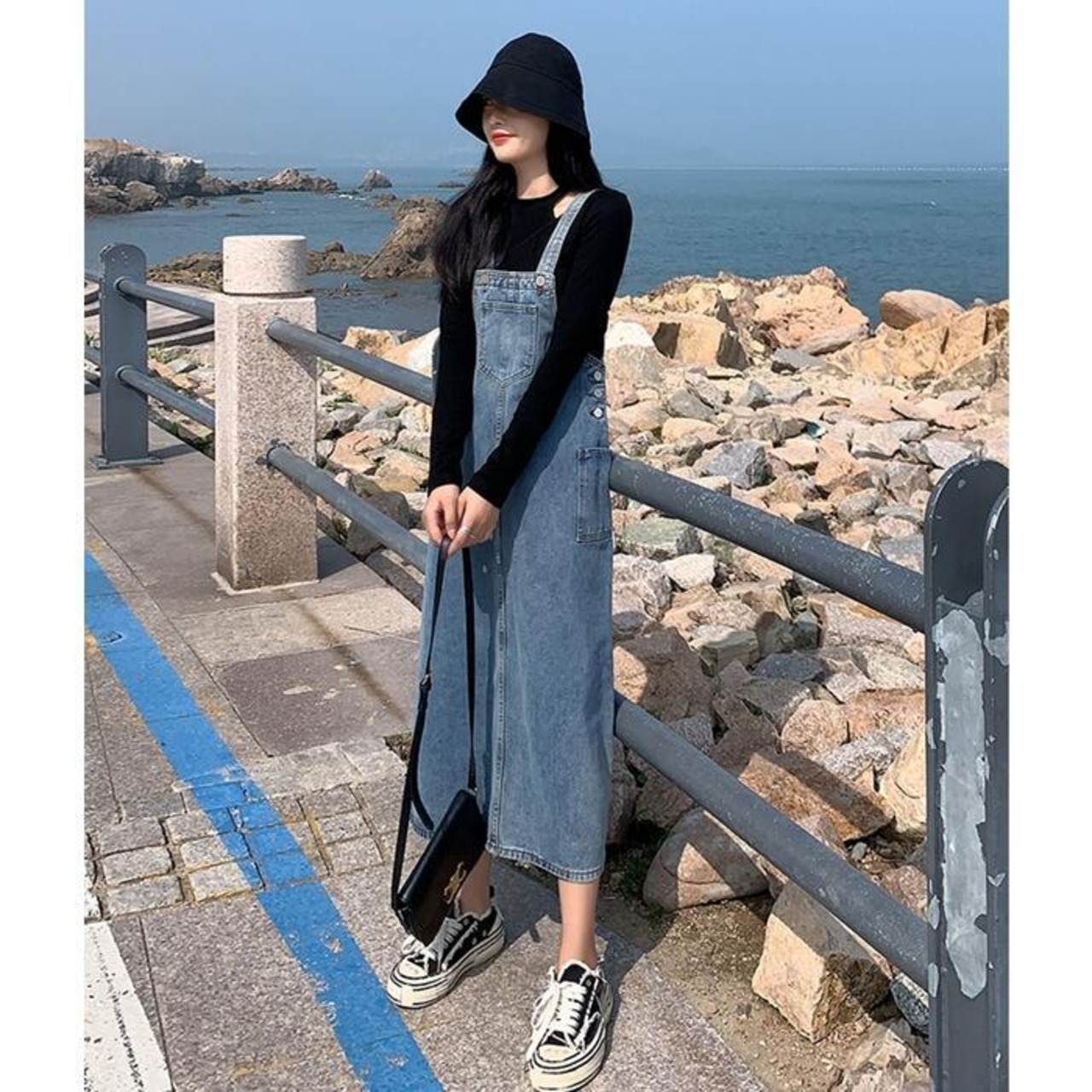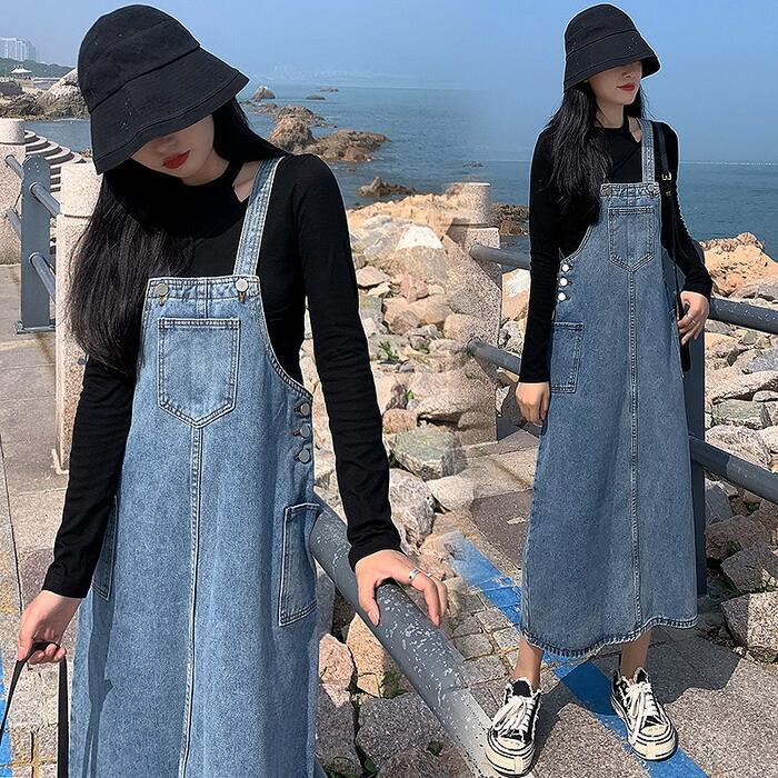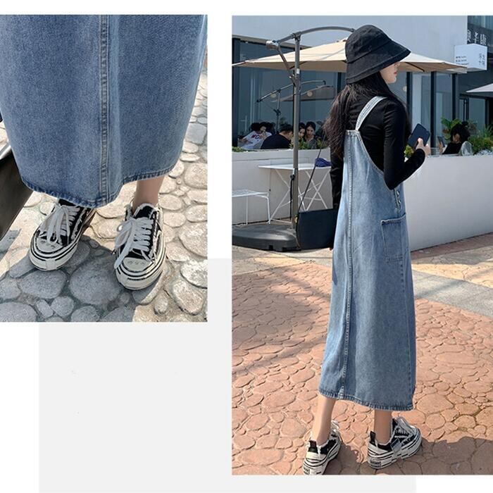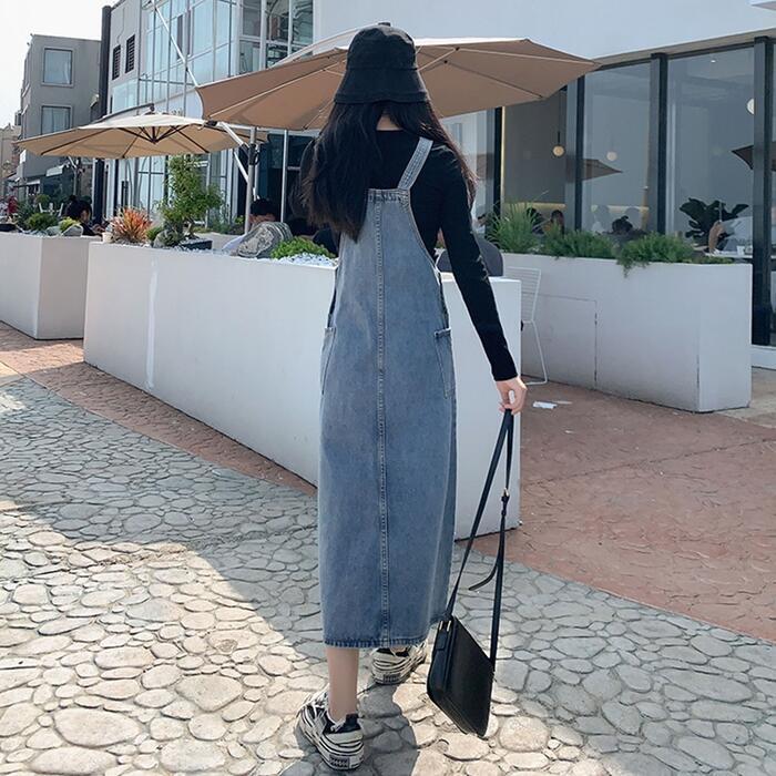全2種 選べる丈 デニム ジャンパースカート ワンピース ロングワンピ サロペットスカート ノースリーブ レディース ワンピ きれいめ カジュアル 大人 可愛い Aライン レイヤード 大きいサイズ ブルー 青 春 秋 夏 20代 30代 40代 50代