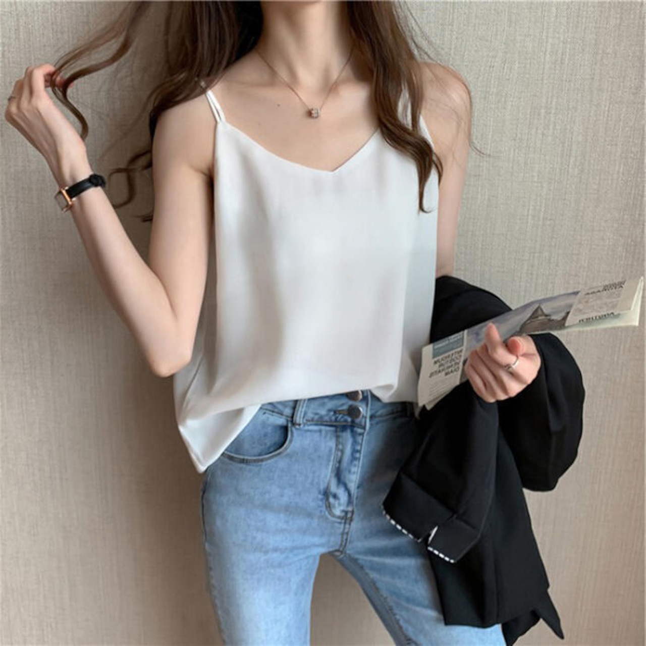 ダブルストラップで、一枚で着てもサマになります。