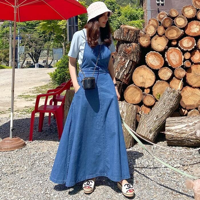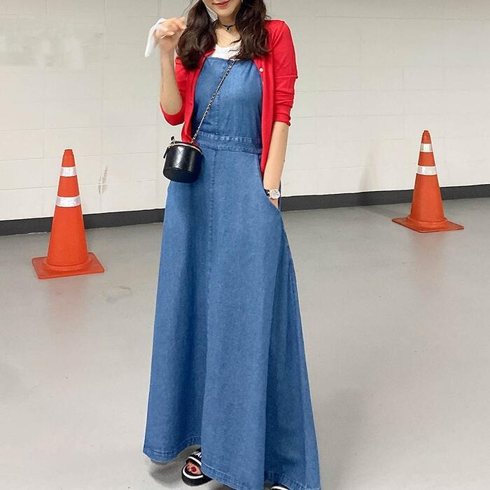 大きいサイズデニム ジャンパースカート サロペットスカート ワンピース ロングワンピ マキシ丈 レディース ワンピ ドレス ノースリーブ 大人 可愛い カジュアル Aライン ブルー 青 オールシーズン 春 秋 夏 20代 30代 40代 50代