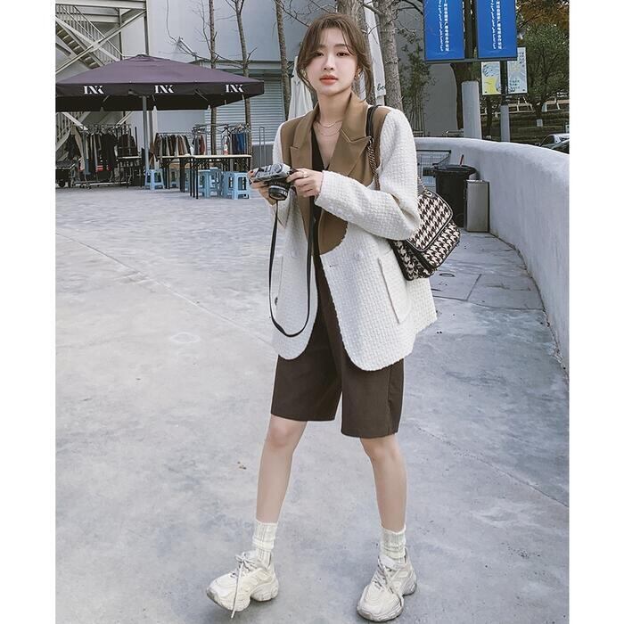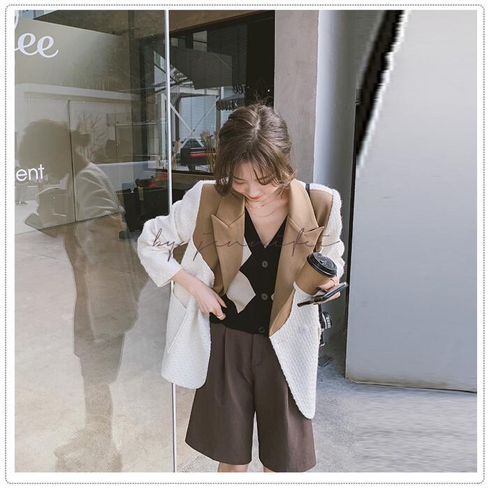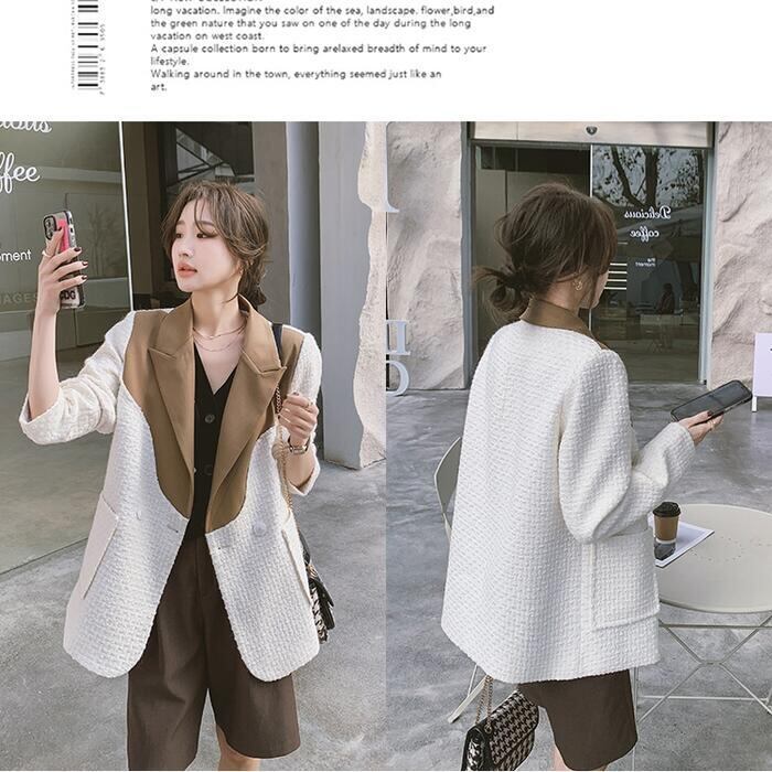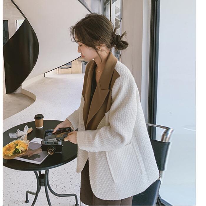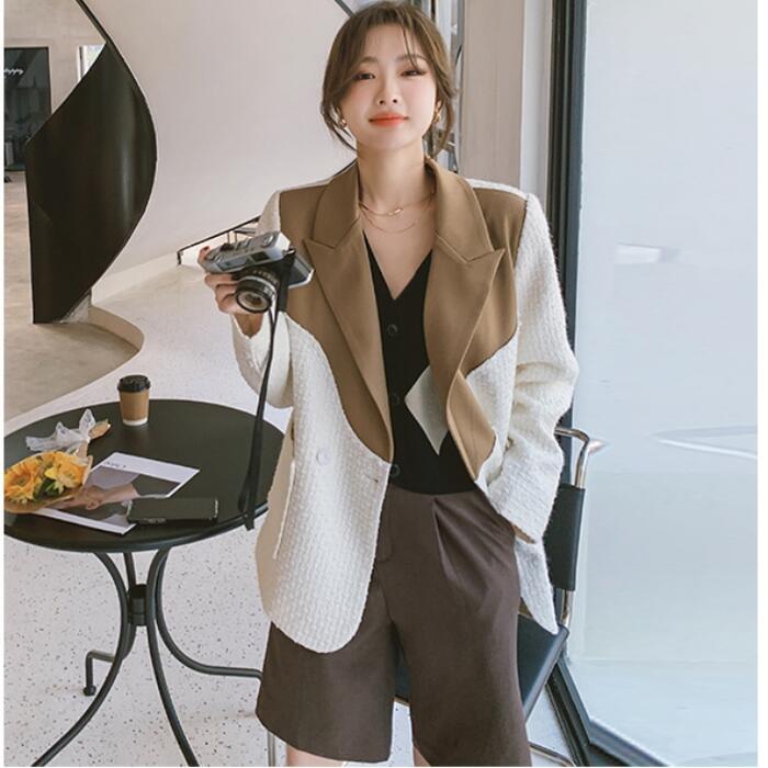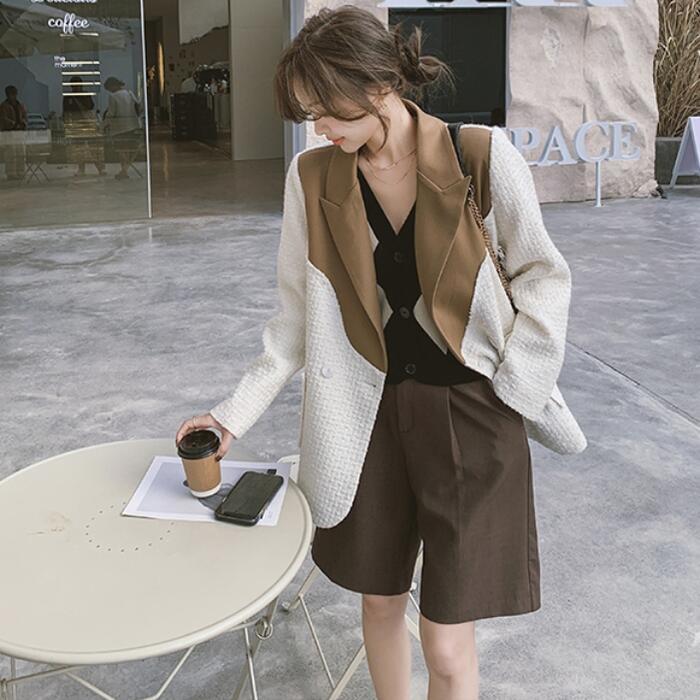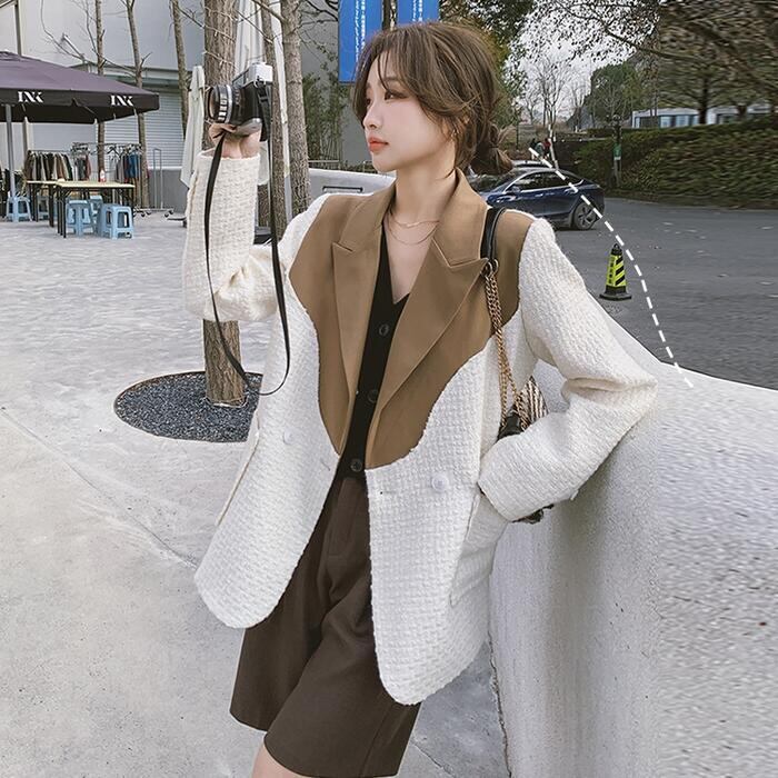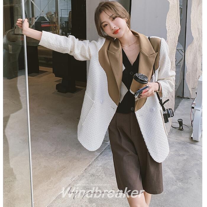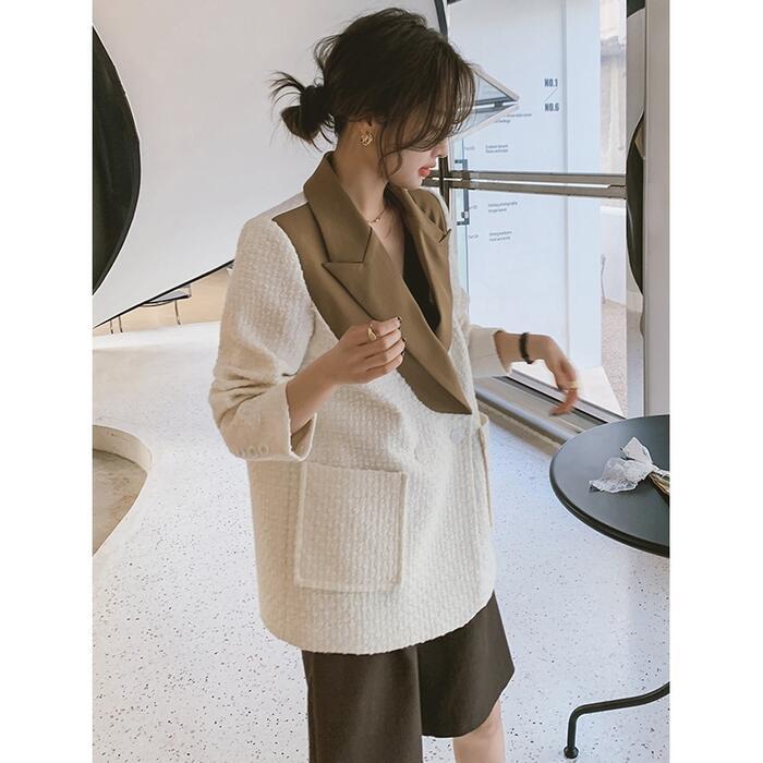 異素材MIXがおしゃれなバイカラーテーラードジャケット。