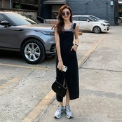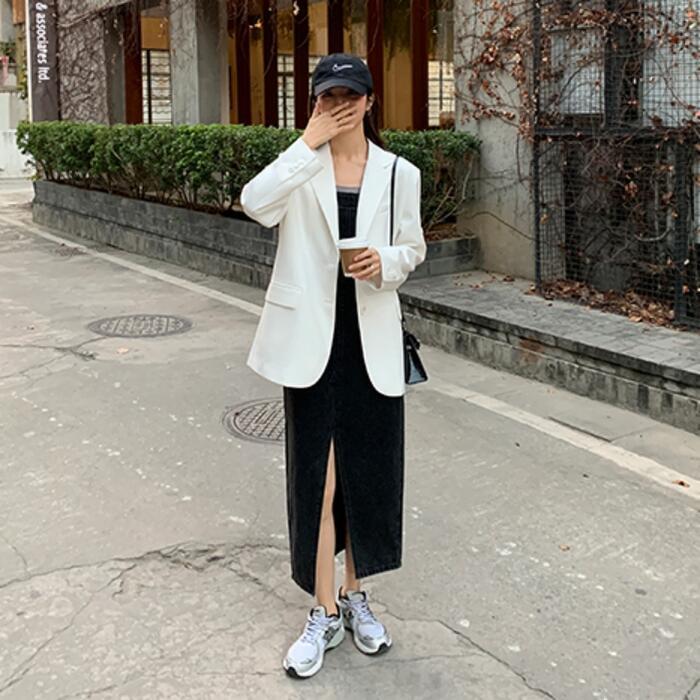 フロントにスリットを入れて、足さばきも軽やか。