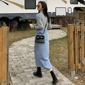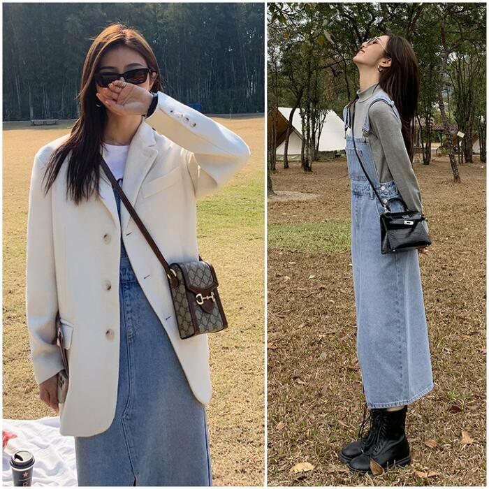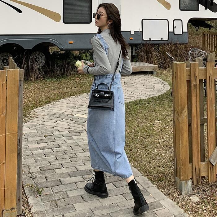 ストンとしたシルエットのデニムジャンパースカート。