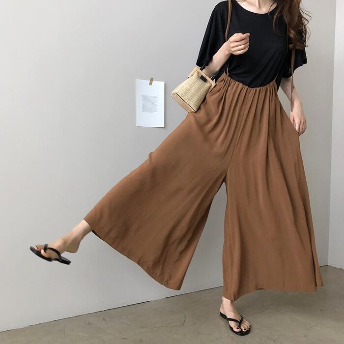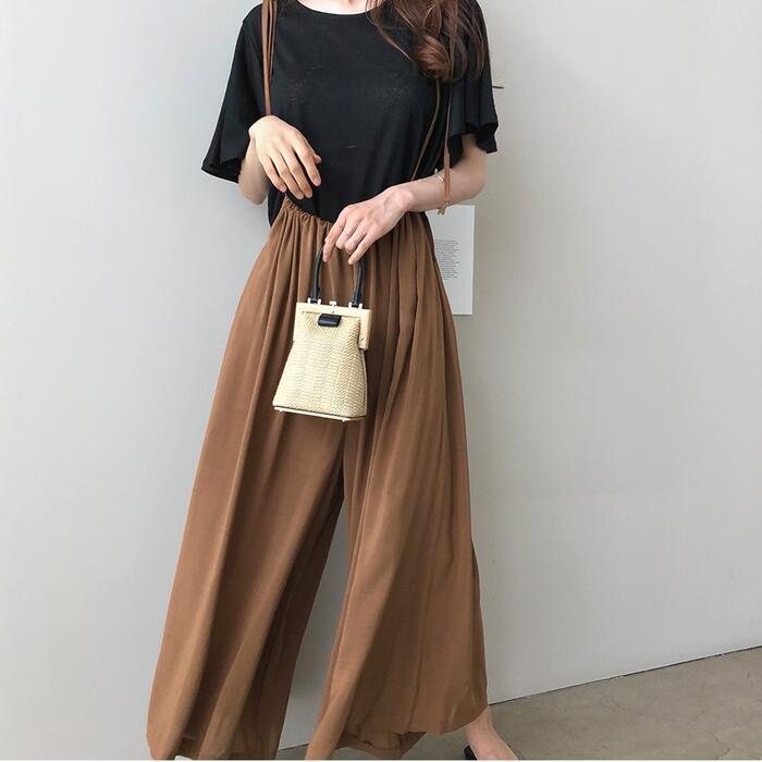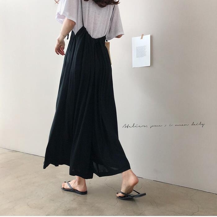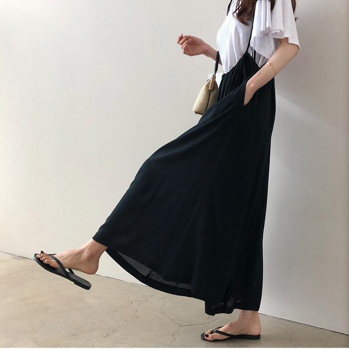 ワイドなシルエットがリラックス感のあるサロペットパンツ。