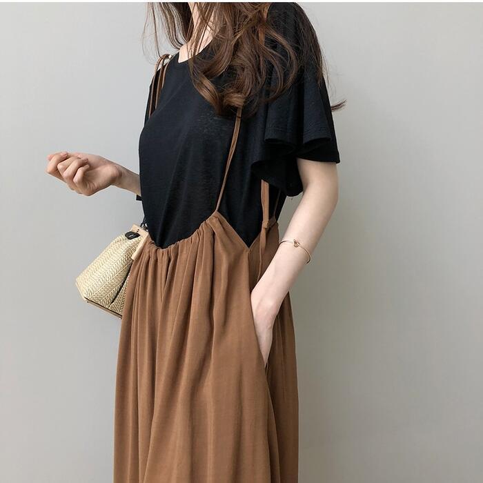 全2色 大きいサイズサロペット レディース パンツ カジュアル おしゃれ ワイド 体型カバー オーバーオール ワイドレッグ ロング丈 シンプル かっこいい 大人 可愛い ゆったり リラックス ブラック 黒 カーキ 春 夏 秋 20代 30代 40代 50代