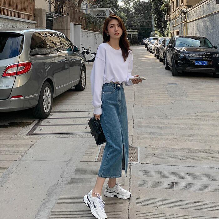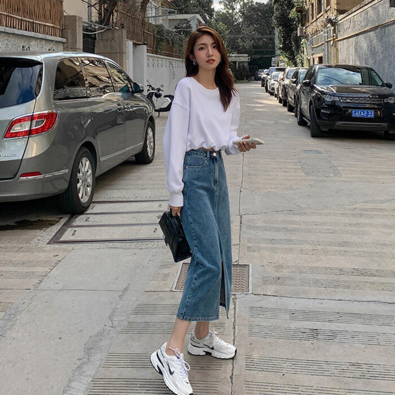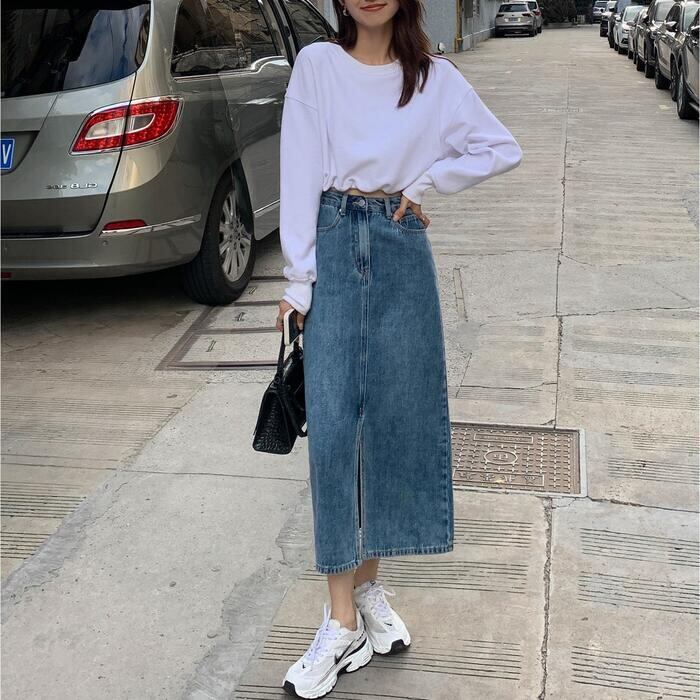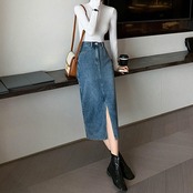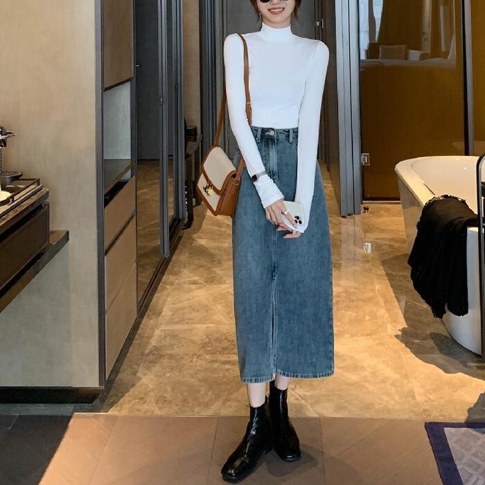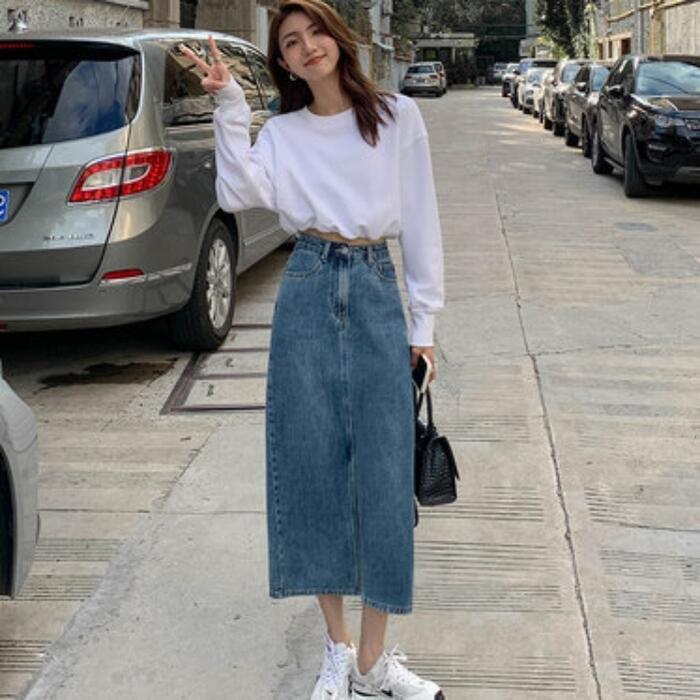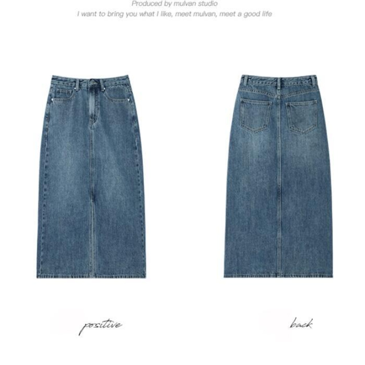 デニム スカート ロングスカート ミモレ丈 カジュアル レディース フェミニン 大人可愛い ヴィンテージ シンプル タイト スリム かっこいい ベーシック オールシーズン ブルー 青 春 秋 冬 20代 30代 40代 50代