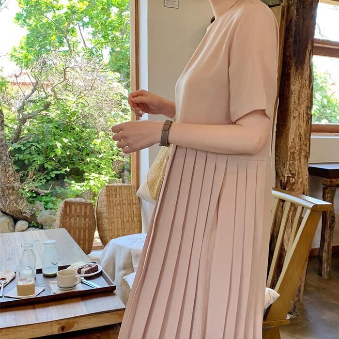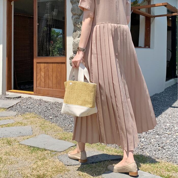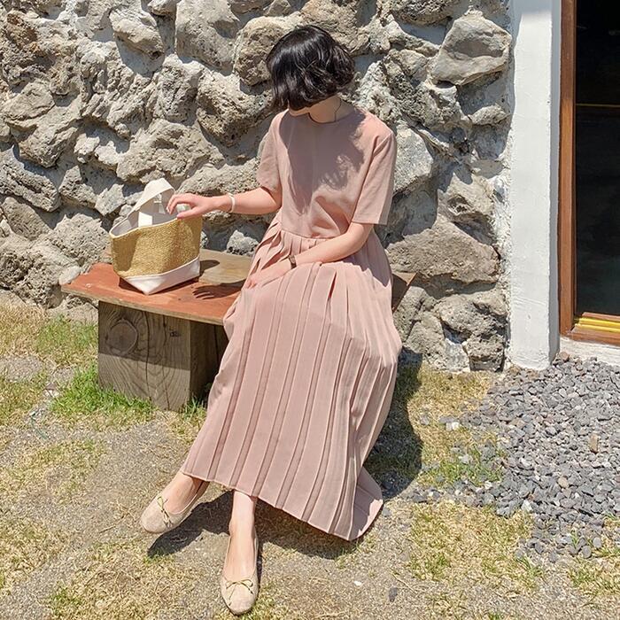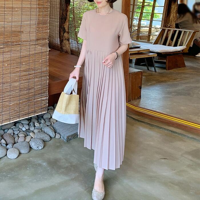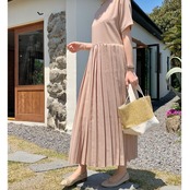 ウエストからプリーツに切り替えたロングワンピース。