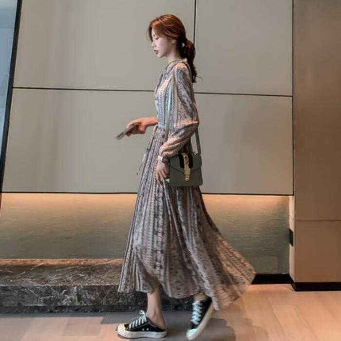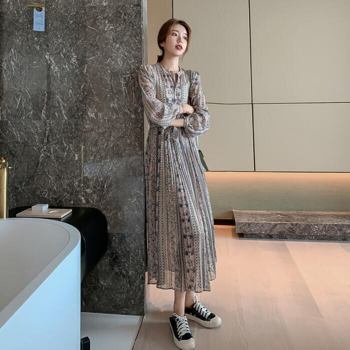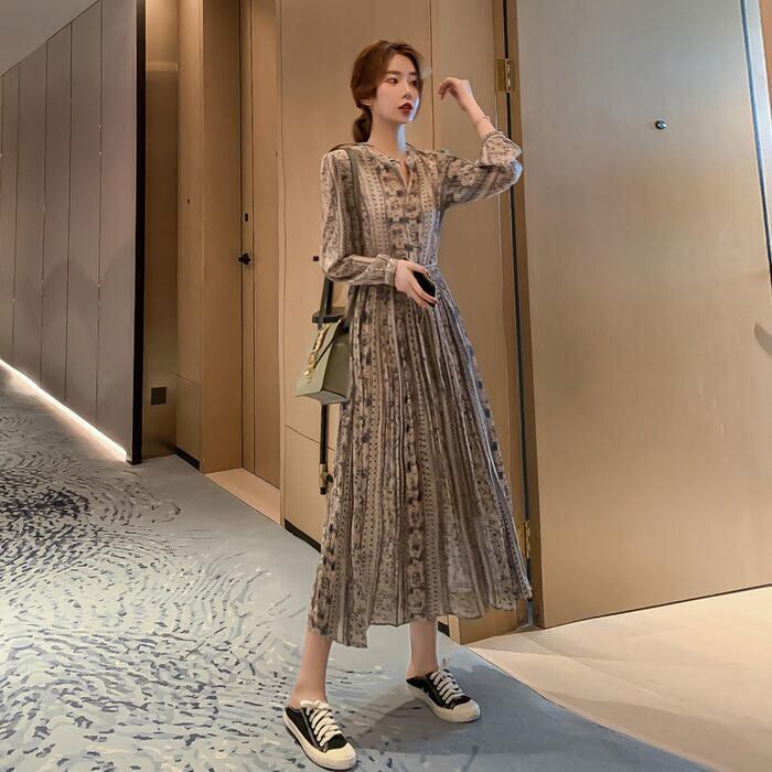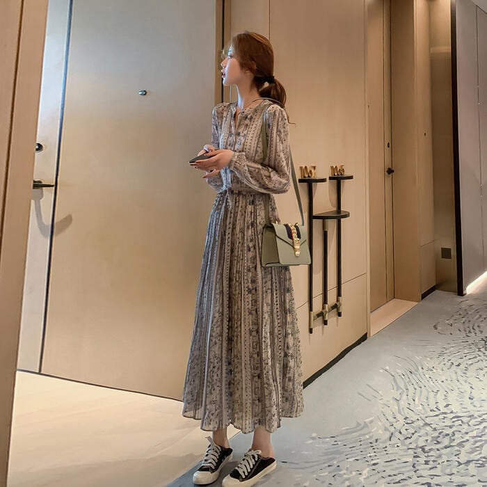 クラシカルな雰囲気のフラワープリントワンピース。
