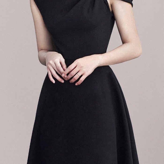 フォーマルシーンにぴったりの上品なAラインワンピース。