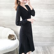 カシュクールデザインのVネックワンピース。