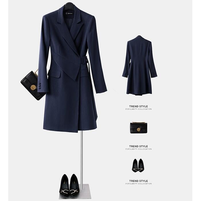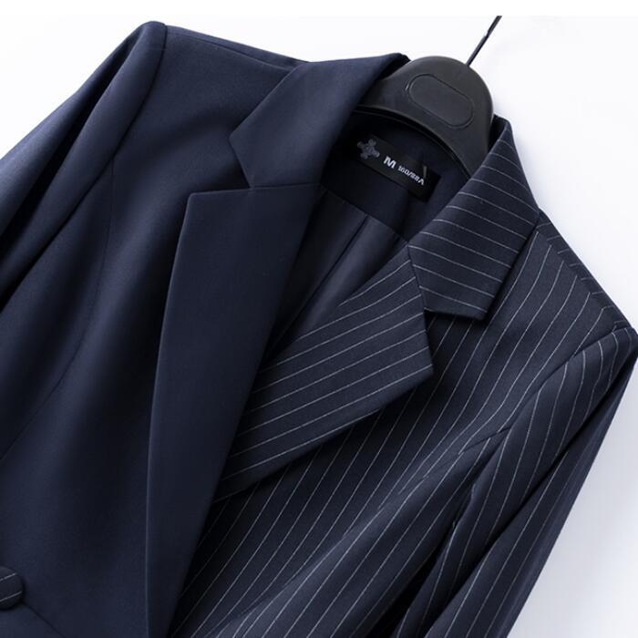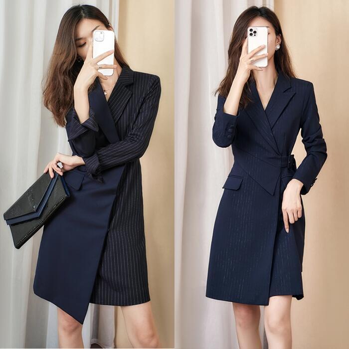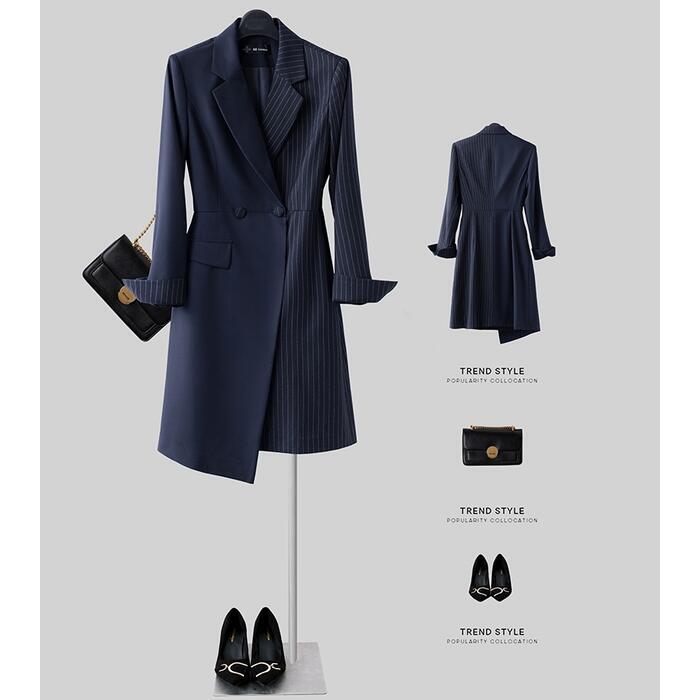 全2種 大きいサイズ ワンピース ジャケット ストライプ ドッキング アシンメトリー おしゃれ 袖あり ミニ丈 長袖 エレガント カジュアル レディース ワンピ ドレス きれいめ Aライン オフィス 通勤 お呼ばれ 高見え ネイビー 春 冬 秋 20代 30代 40代 50代