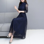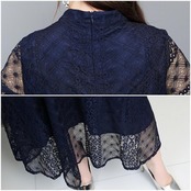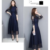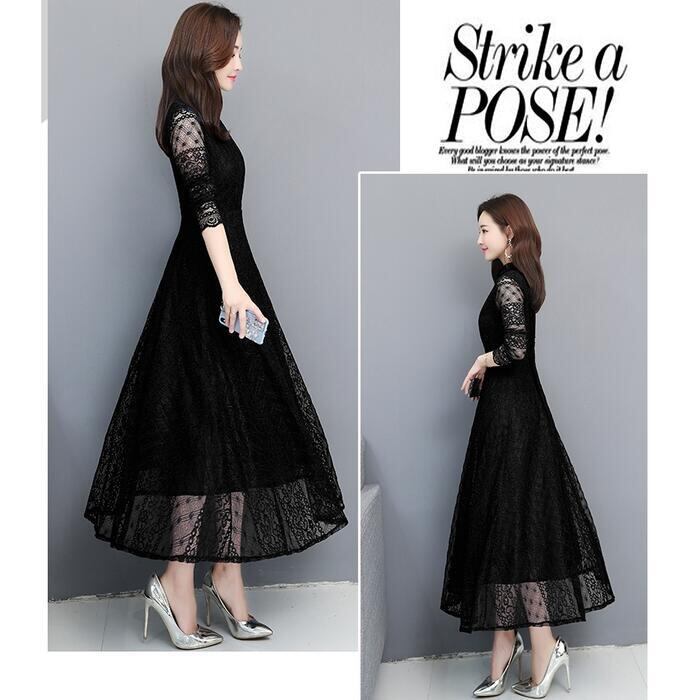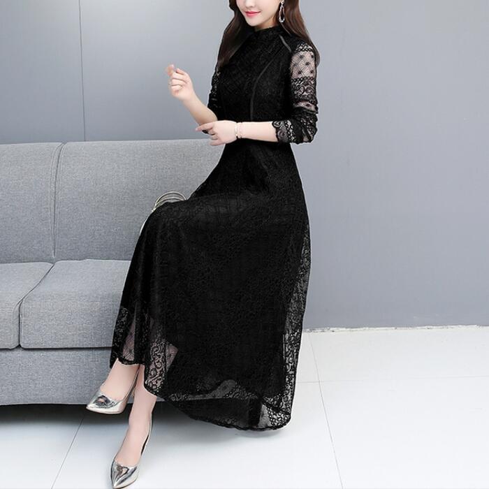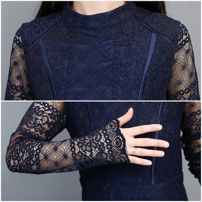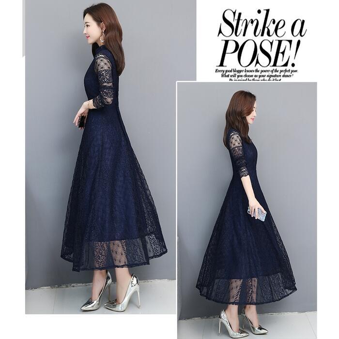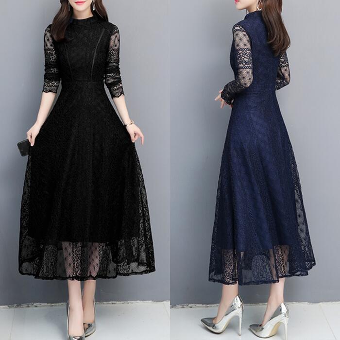 全2色 大きいサイズパーティードレス ワンピース 結婚式 お呼ばれ ミモレ丈 袖あり フォーマル 長袖 レース ハイネック エレガント レディース ワンピ きれいめ 二次会 セレモニー フェミニン ハイウエスト ブラック 黒 ネイビー 春 秋 夏 20代 30代 40代 50代