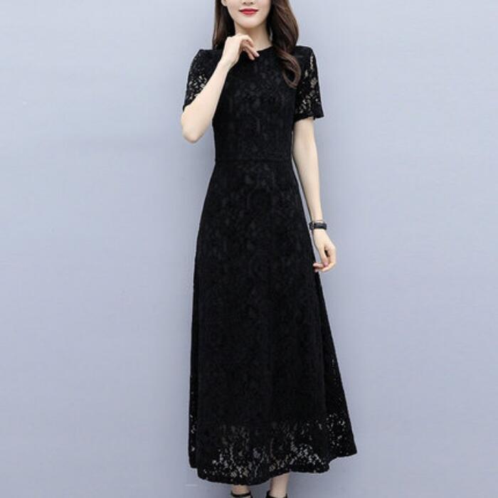 大きいサイズパーティードレス ワンピース 結婚式 お呼ばれ ロング丈 袖あり フォーマル 半袖 レース エレガント レディース ワンピ きれいめ 二次会 セレモニー フェミニン 透け感 ハイウエスト ブラック 黒 春 秋 夏 20代 30代 40代 50代