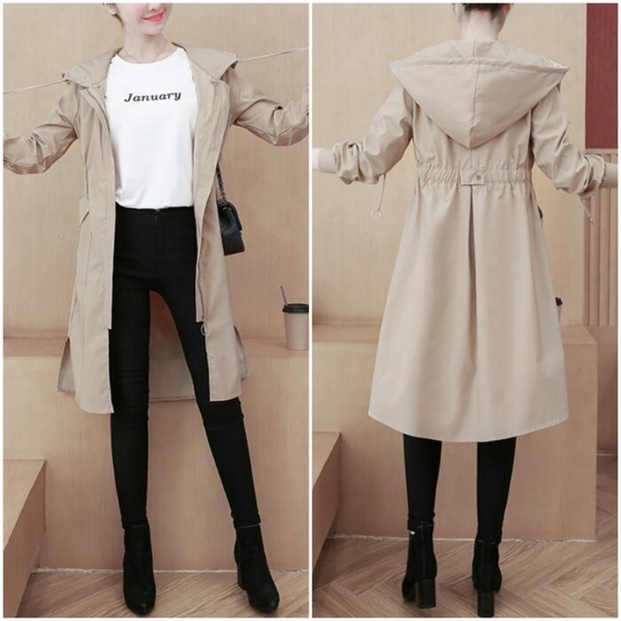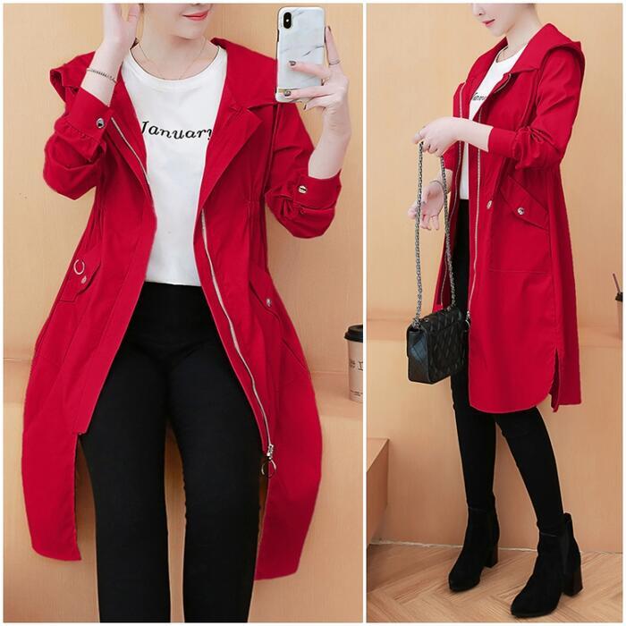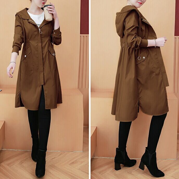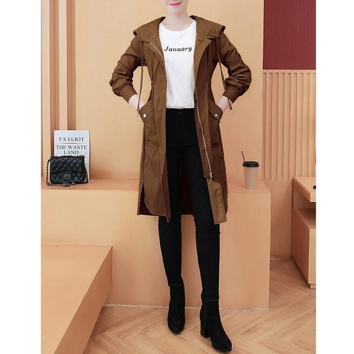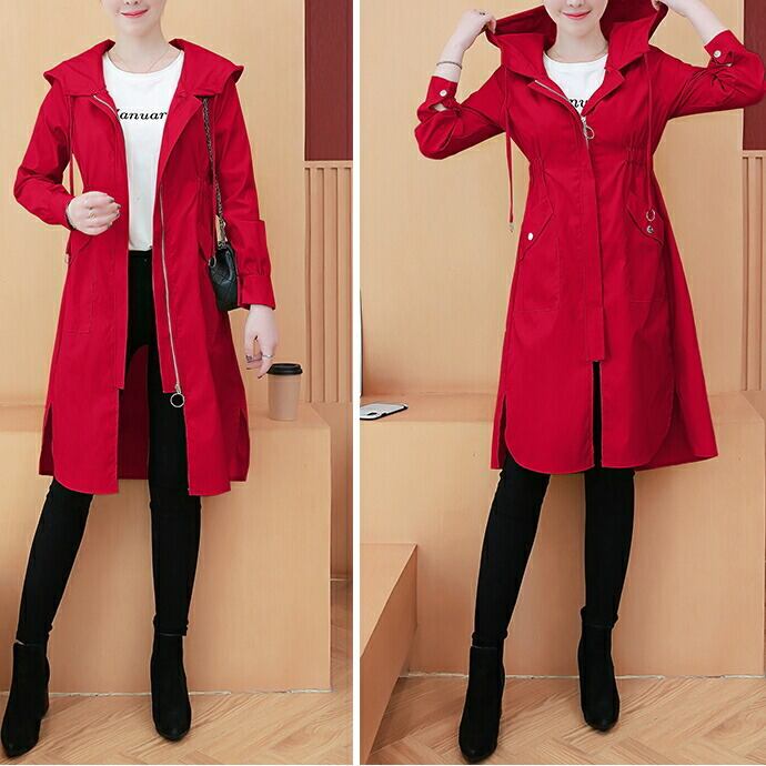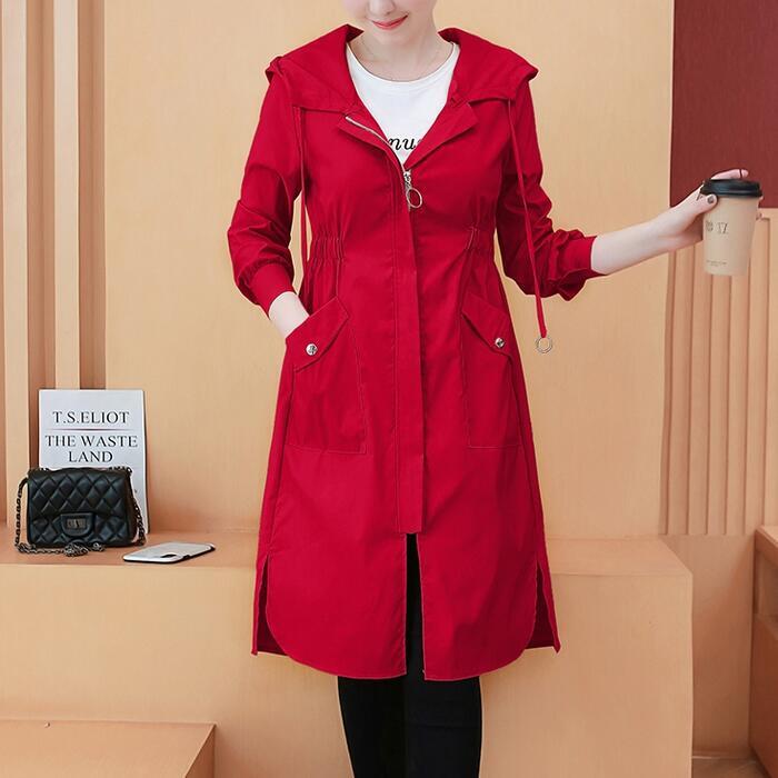 全3色 大きいサイズスプリングコート ジャケット 春 コート マウンテンパーカー ミドル丈 レディース カジュアル アウター 大人 可愛い フェミニン フード付き スポーティ おしゃれ アウトドア カーキ レッド 赤 ブラウン 春 秋 夏 20代 30代 40代 50代