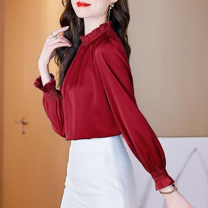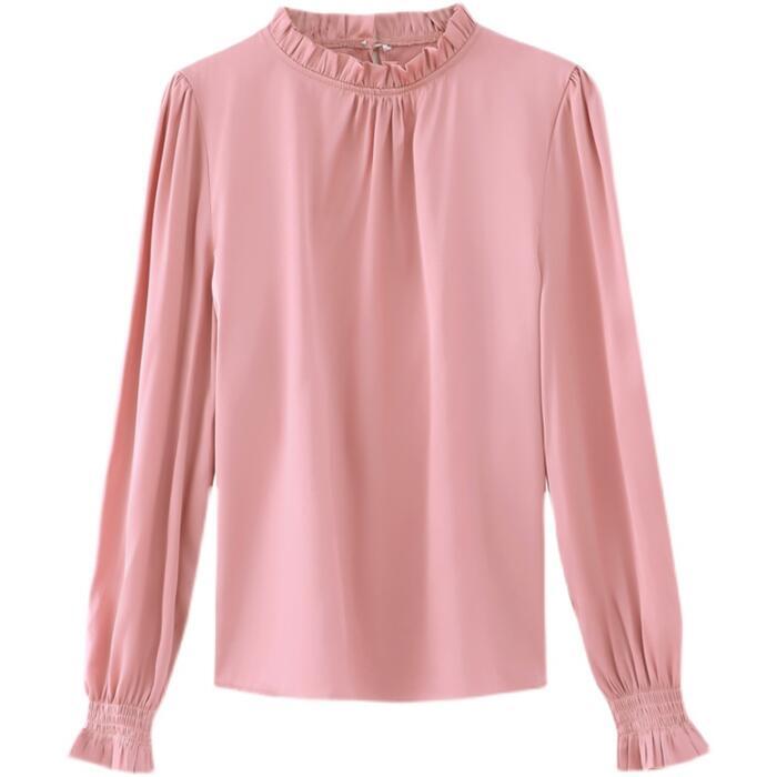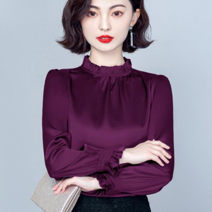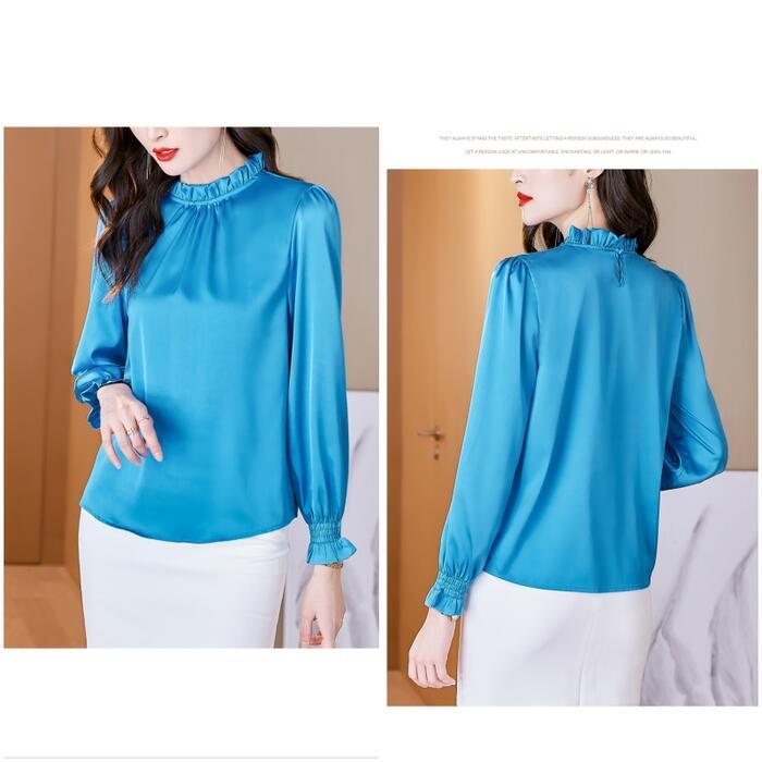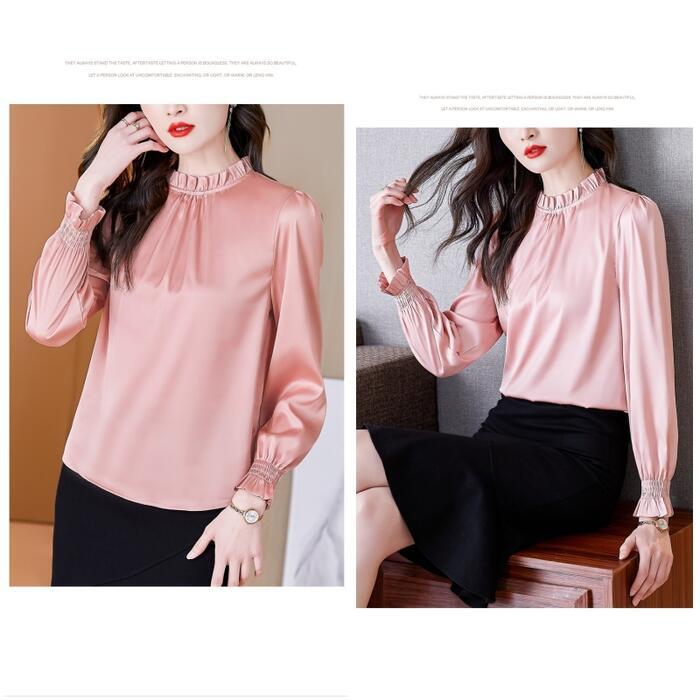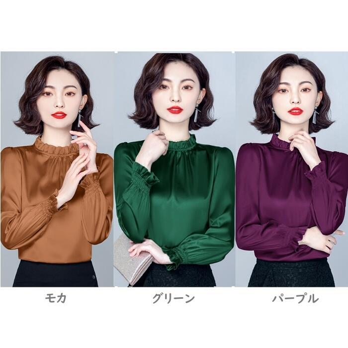 全9色 大きいサイズ トップス シャツ ブラウス カットソー レディース きれいめ カジュアル 長袖 フリル スタンドカラー おしゃれ 大人 可愛い フェミニン 通勤 レッド 赤 ブルー 青 パープル ピンク グリーン 緑 ブラウン グレー 春 夏 秋 20代 30代 40代 50代