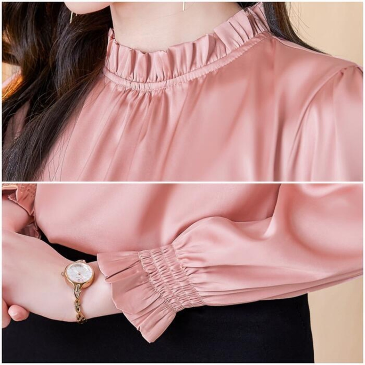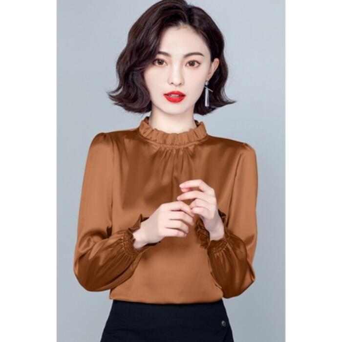 上品な光沢と滑らかなタッチのブラウス。