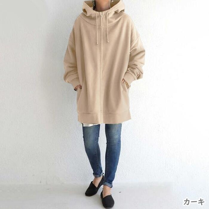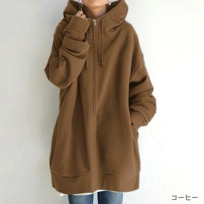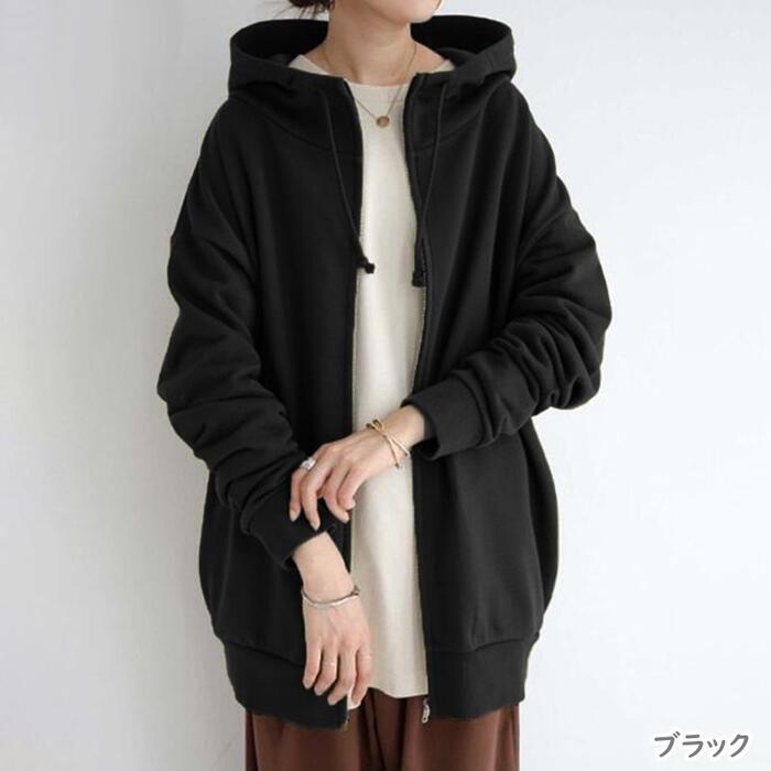 全7色 大きいサイズ ビッグシルエット ゆったりトップス ジャケット アウター フーディー パーカー レディース カジュアル 長袖 ジップアップ おしゃれ 大人 可愛い スポーティ かっこいい ネイビー ベージュ レッド 赤 グリーン 緑 グレー ブラウン ブラック 黒 春 冬 秋 20代 30代 40代 50代