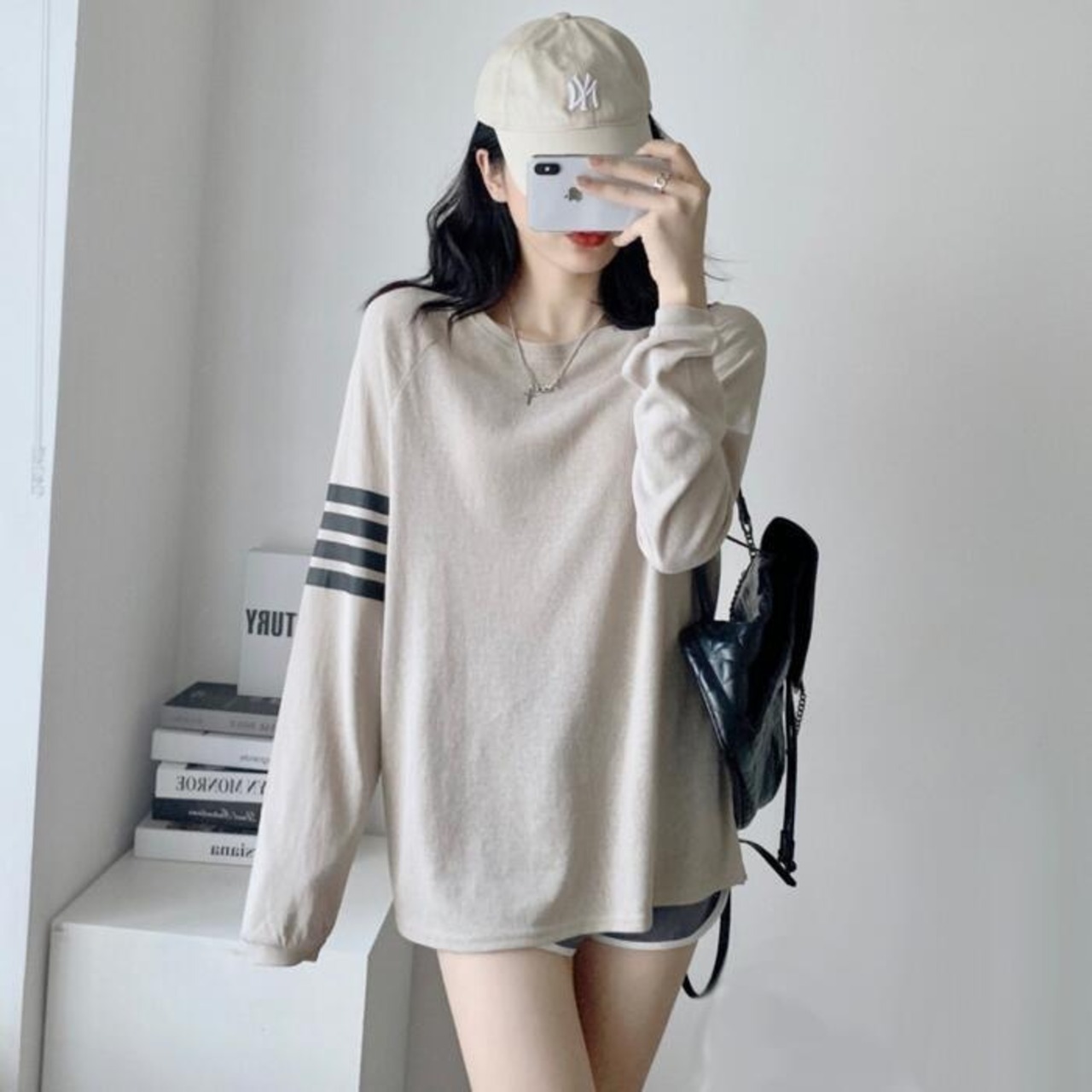 全3色 トップス Tシャツ カットソー インナー ライン レディース カジュアル 長袖 おしゃれ 大人 可愛い スポーティ かっこいい ゆったり リラックス 体型カバー ベージュ ネイビー ホワイト 白 春 夏 秋 20代 30代 40代 50代