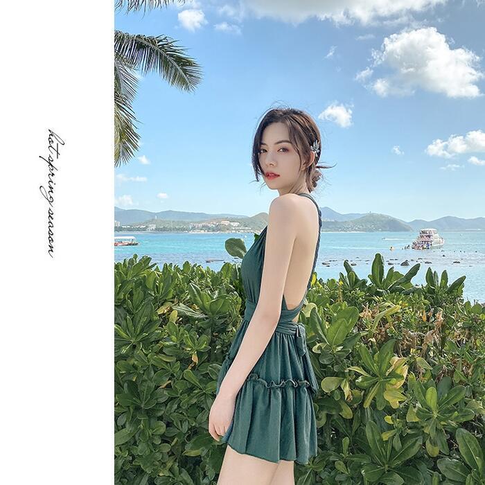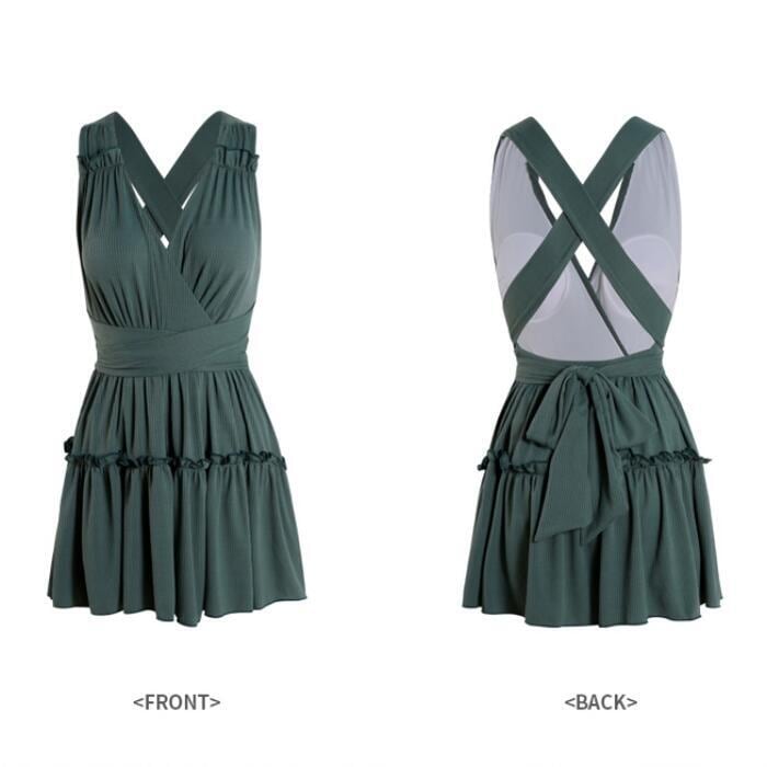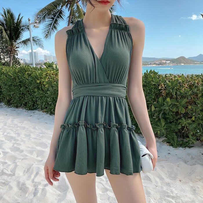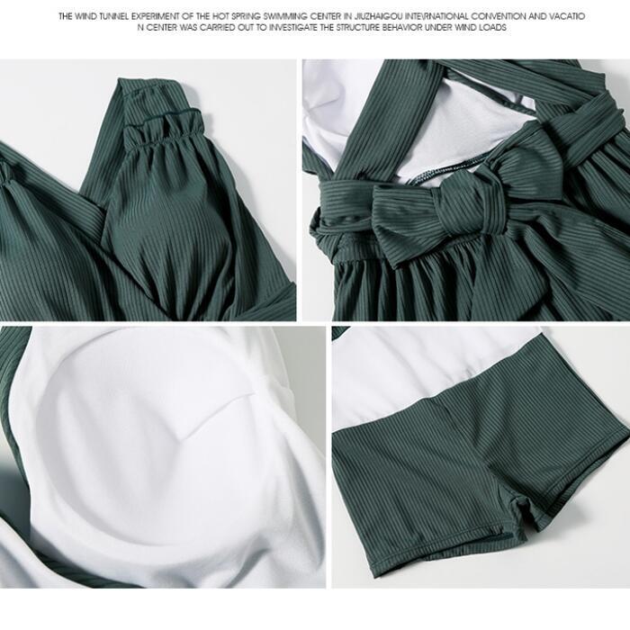レディース 水着 ワンピース おしゃれ スイムウェア リボン 体形カバー エレガント リゾート 海 プール 夏 フェミニン きれいめ 大人 可愛い キュート シンプル ワンピ 大きいサイズ クラシカル グリーン 緑 20代 30代 40代 50代