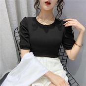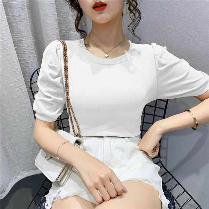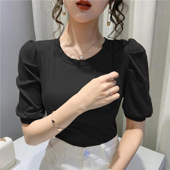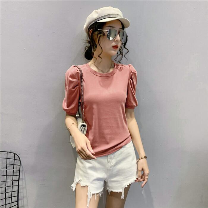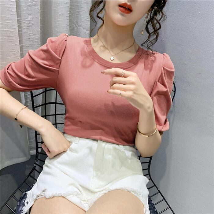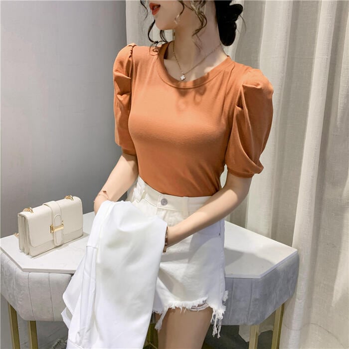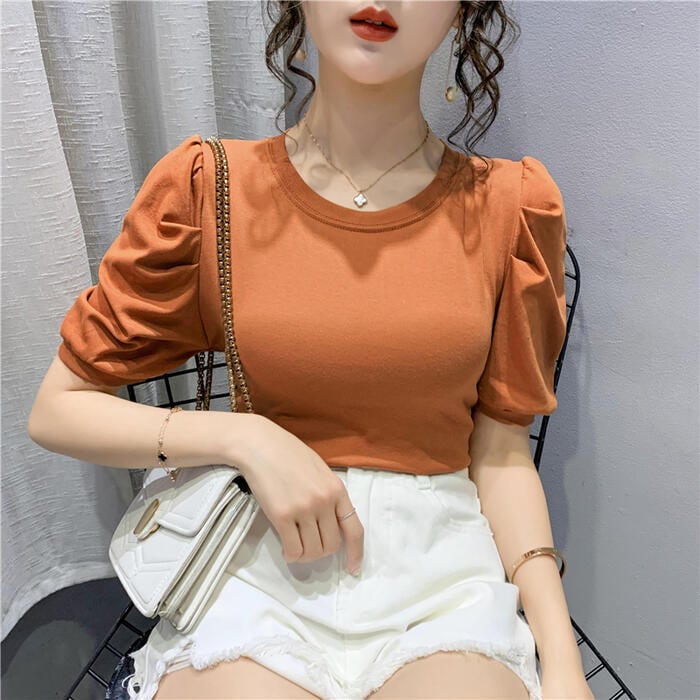 シンプルで着回しやすいパフスリーブTシャツ。