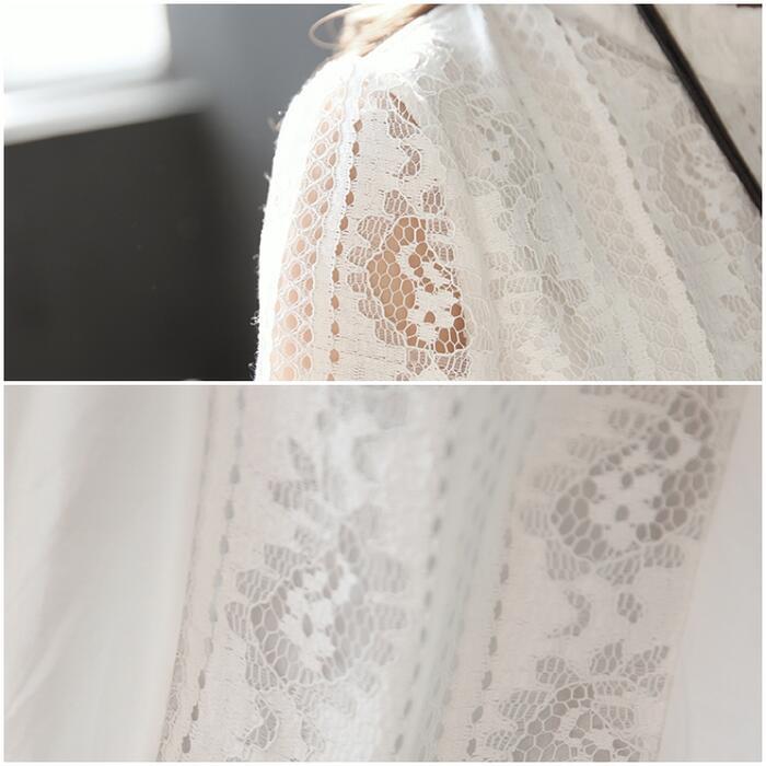 レースの透け感がフェミニンなチュニックブラウス。