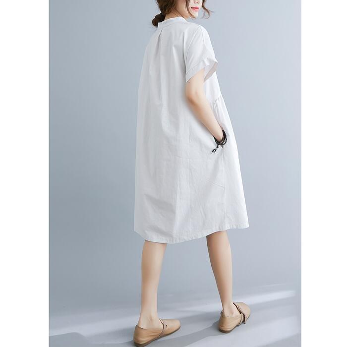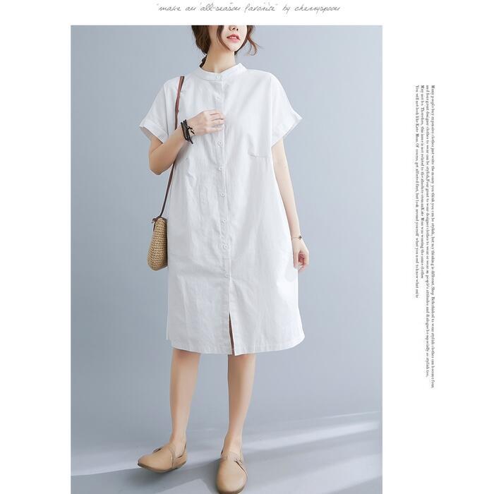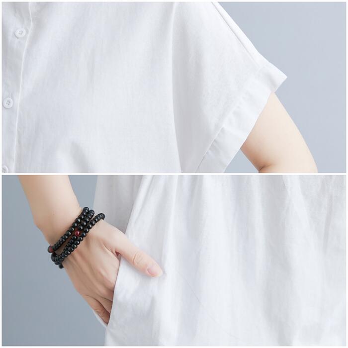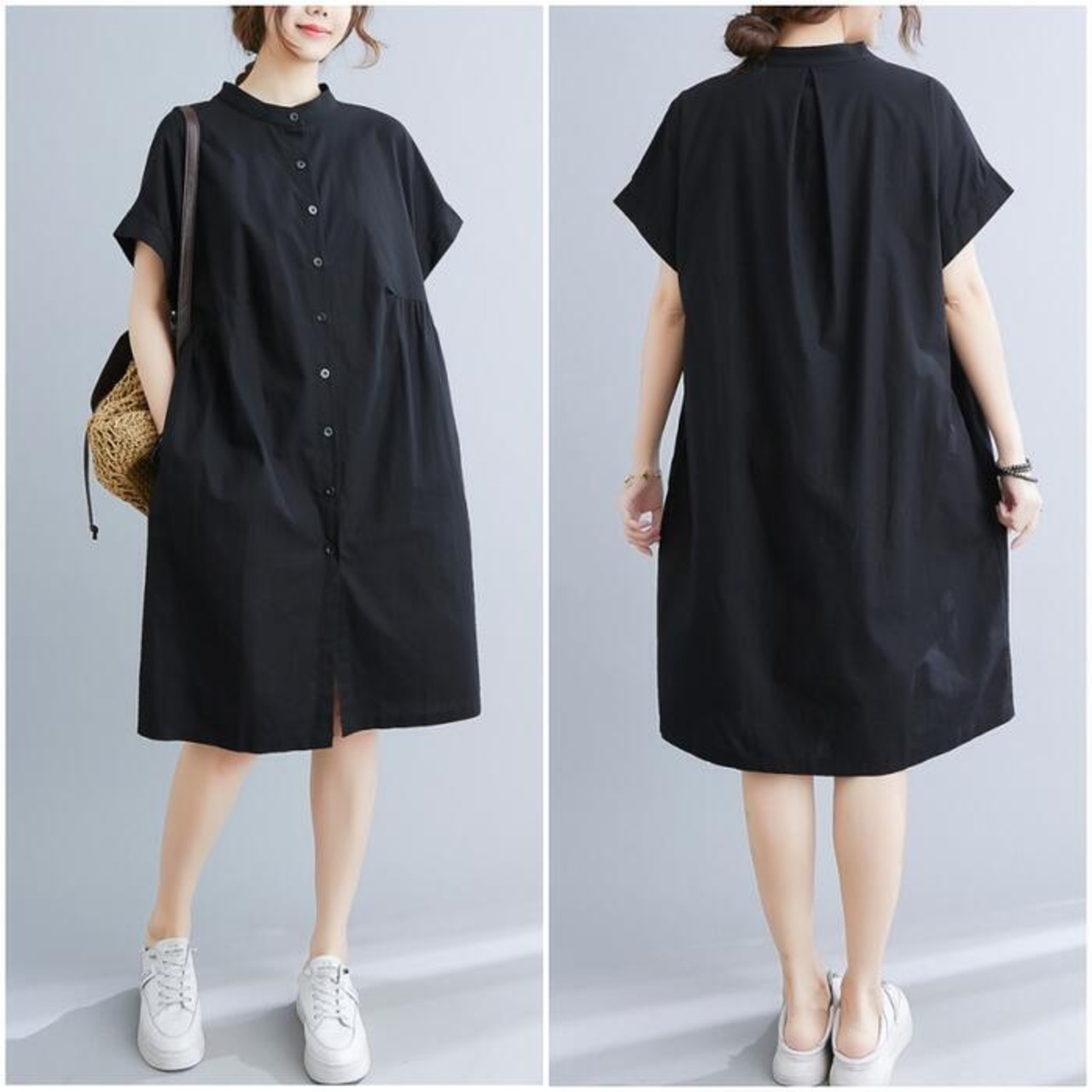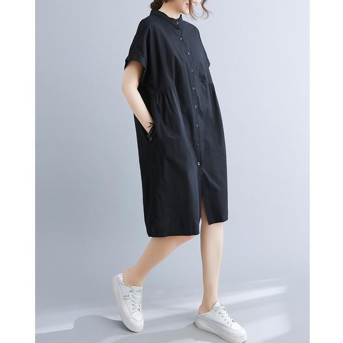 全2色 大きいサイズワンピース シャツワンピ おしゃれ 袖あり ひざ丈 半袖 カジュアル レディース ワンピ ドレス きれいめ シンプル ゆったり 体系カバー 大人 可愛い チュニック ホワイト 白 ブラック 黒 春 夏 秋 20代 30代 40代 50代