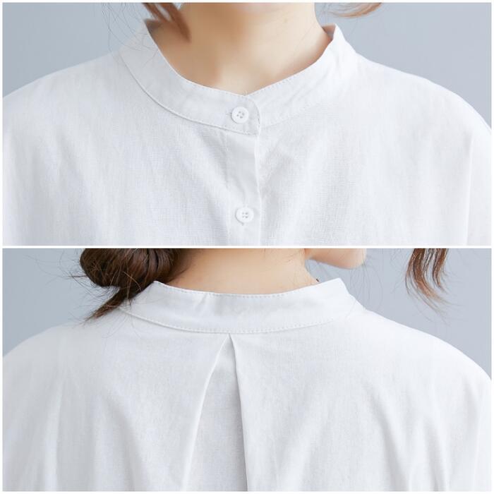 体型を拾わないゆったりシルエットのシャツワンピース。